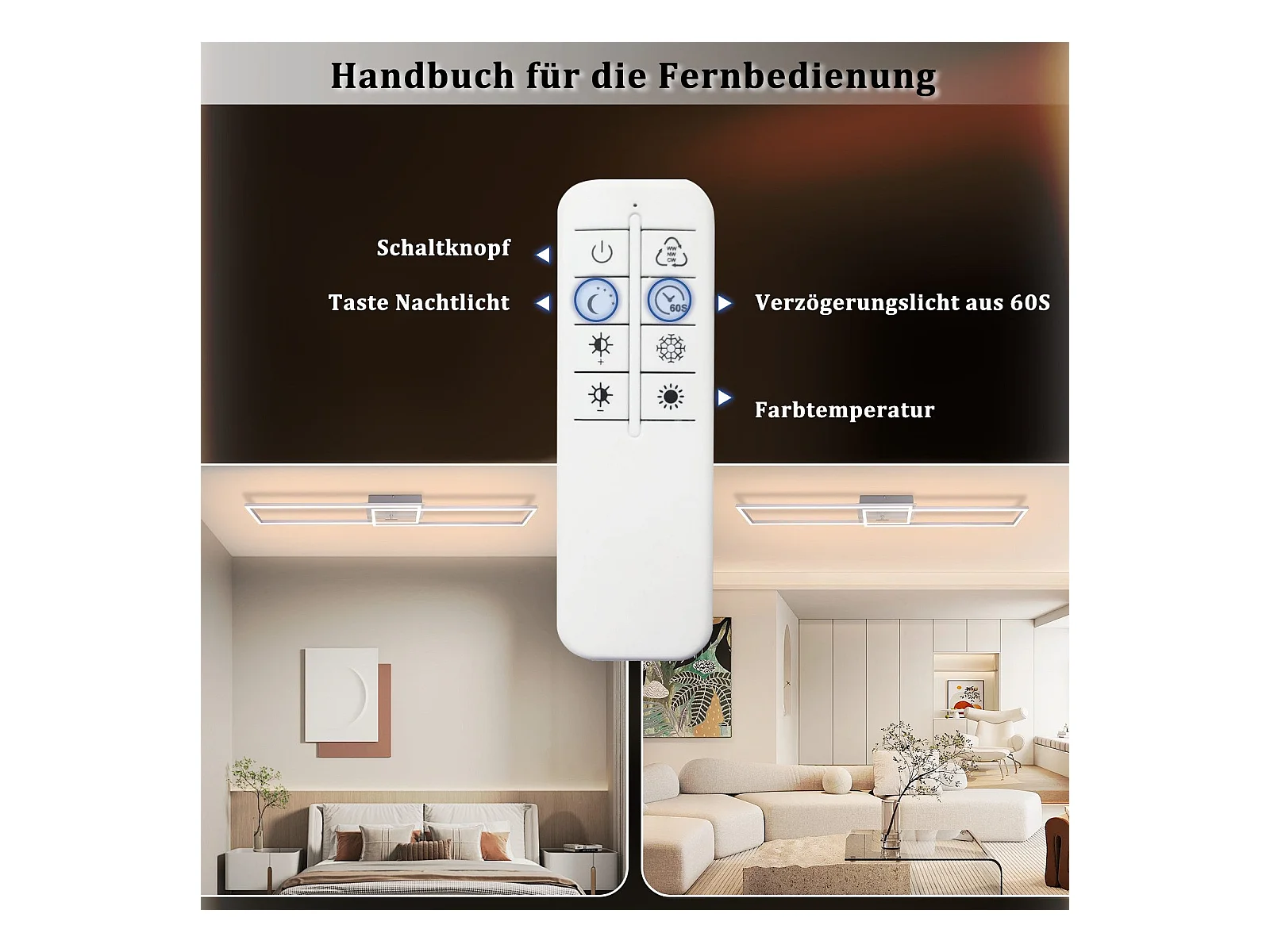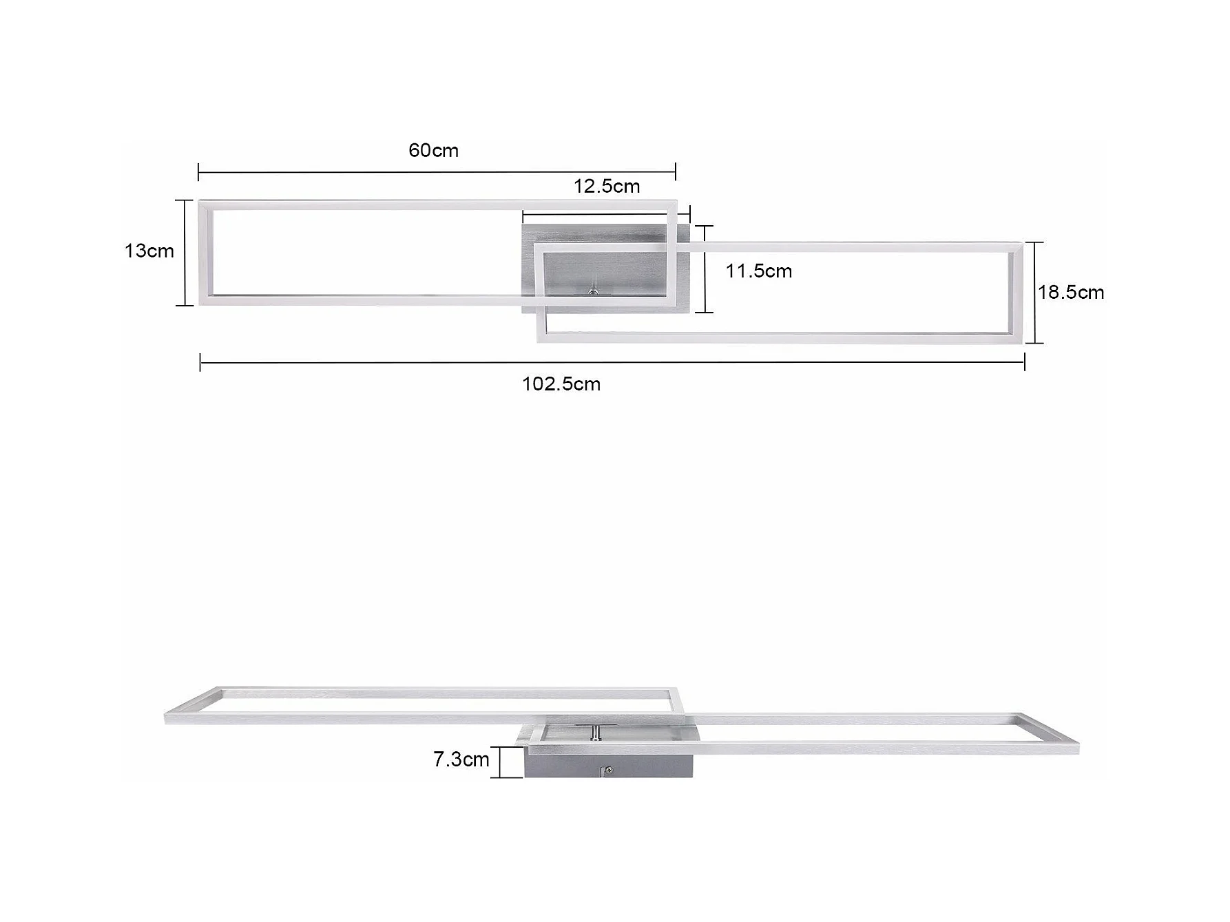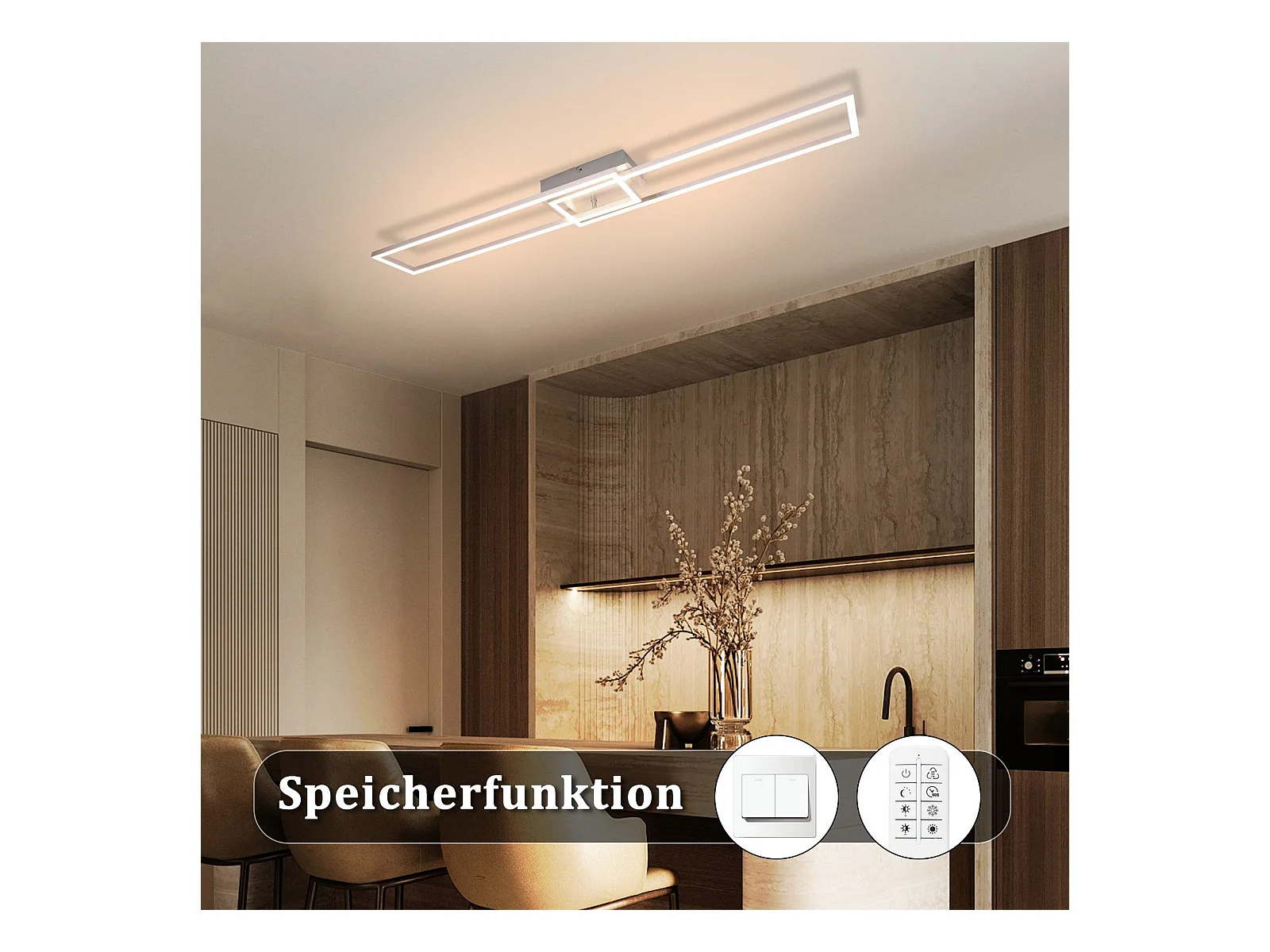 NETTLIFE Plafonnier LED Chambre à coucher - 2 cadres Lampe de chambre à coucher 102CM Moderne Dimmable avec télécommande Plafonnier argenté 36W