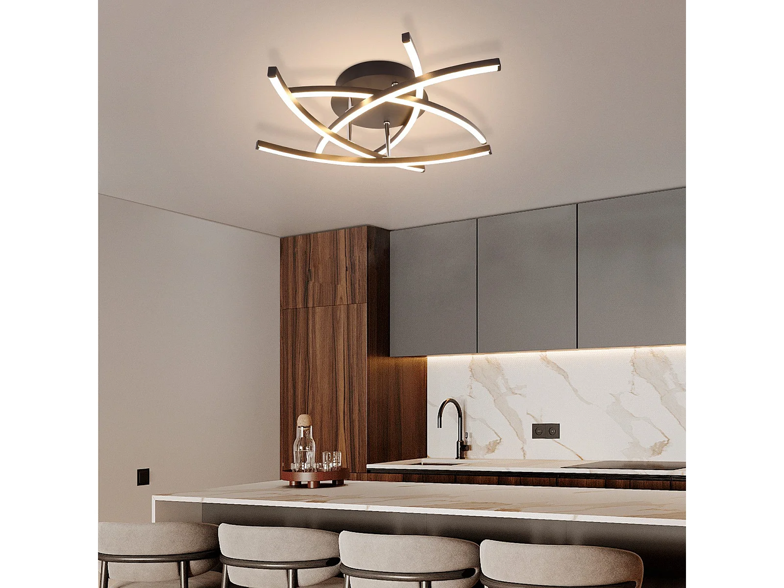 NETTLIFE Plafonnier LED Chambre Noir Dimmable 32w Moderne Métal Avec Télécommande