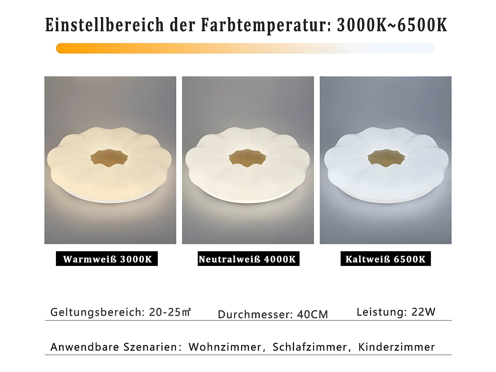 NETTLIFE Plafonnier LED Blanc Chaud Chambre 22 W Lampe Moderne Décoration pour Salon Chambre d'enfant Couloir Salle à Manger Cuisine