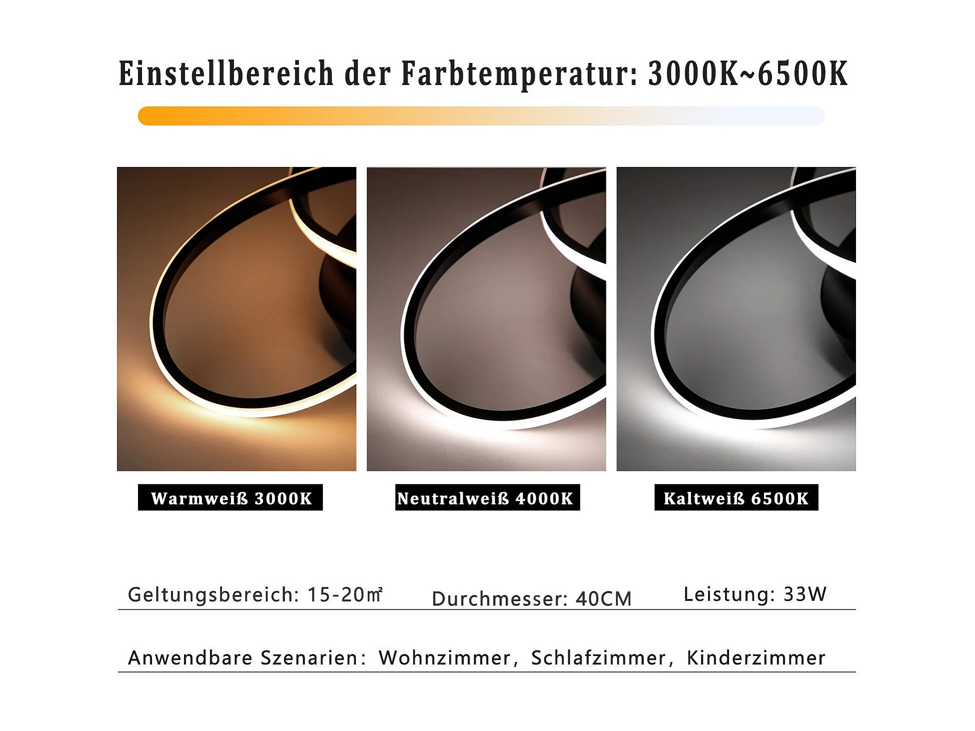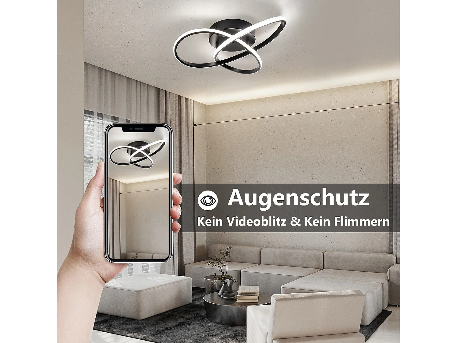 NETTLIFE Plafonnier LED Dimmable 33 W Lampe Noir avec Télécommande Lampe de Chambre Moderne 40 cm pour Salon Cuisine Couloir Studio