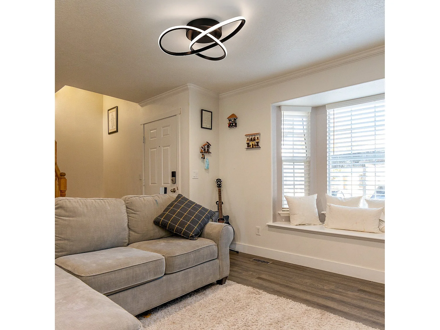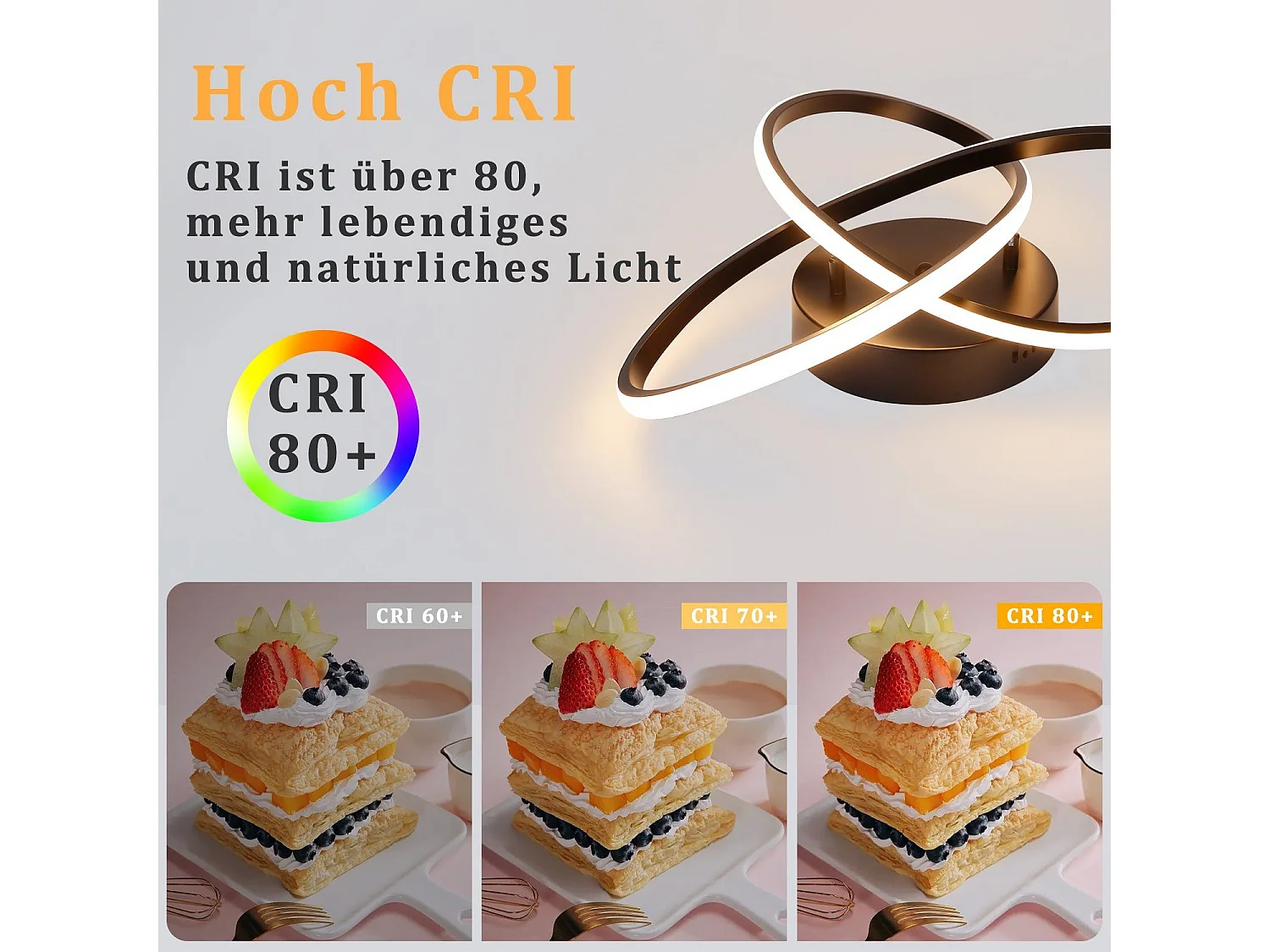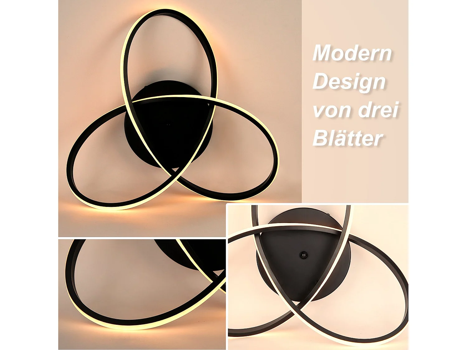 NETTLIFE Plafonnier LED 22W chambre noir blanc chaud avec 3 anneaux design décoration moderne pour salon chambre d'enfant couloir salle à manger