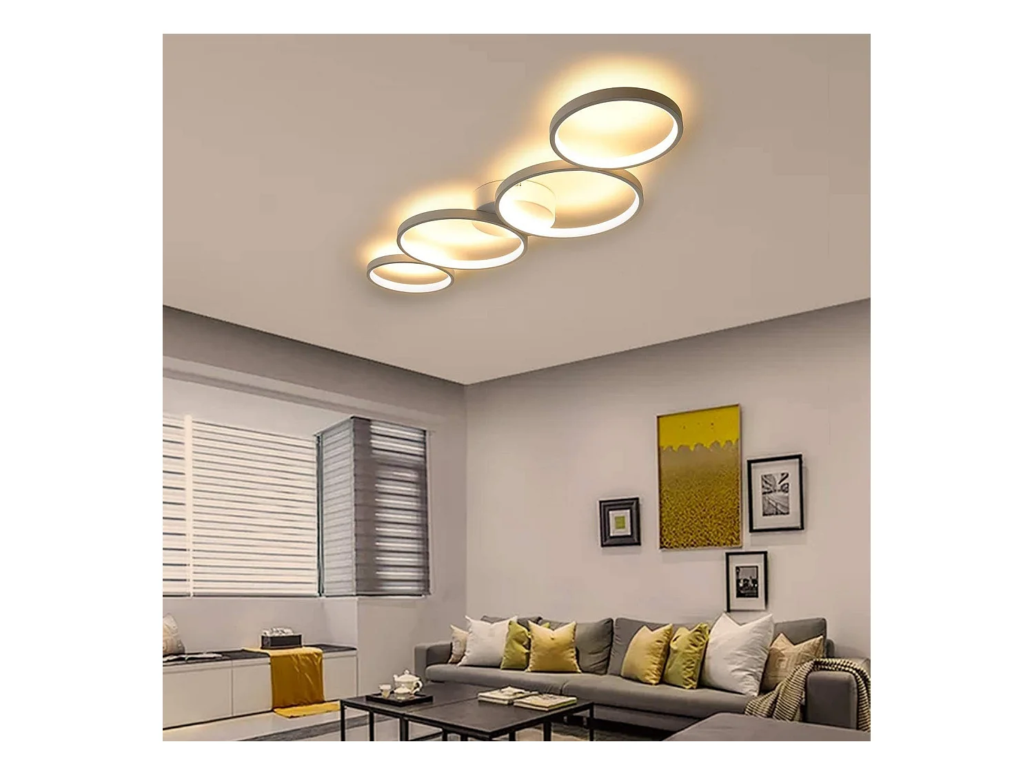 NETTLIFE Plafonnier LED Rond Moderne Blanc Chaud 3000K Anneau 37W Blanc 89cm Lampe de Bureau pour Chambre Salon Couloir Bureau