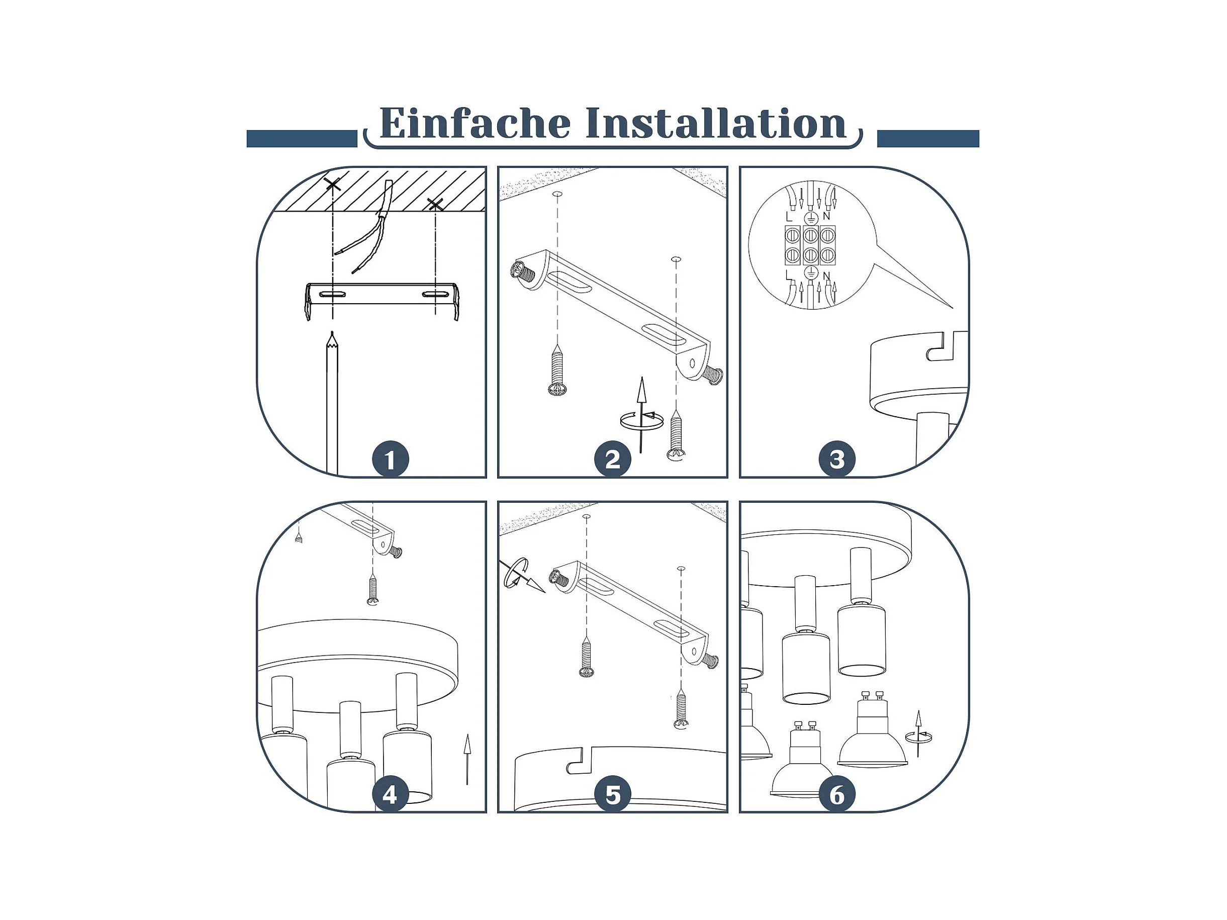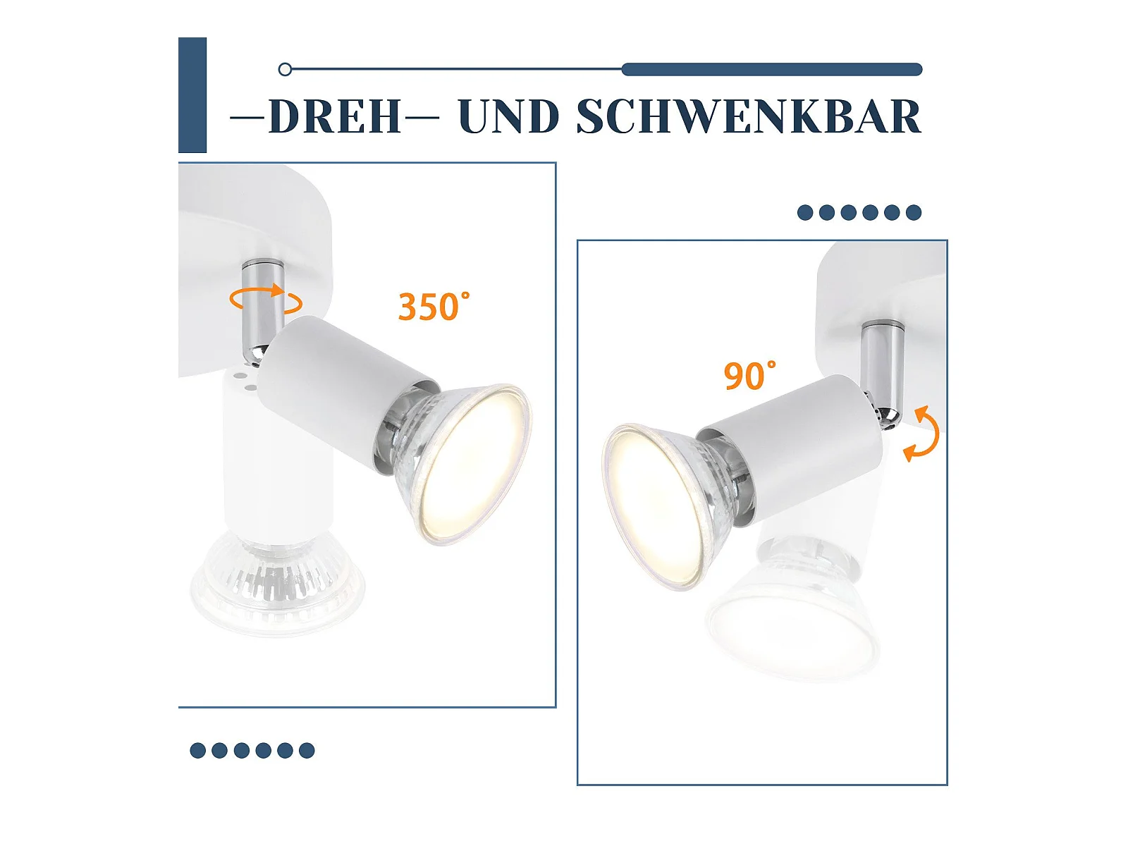 NETTLIFE Plafonnier 6 Ampoules E14 spot de plafond rétro blanc orientable 350° LED