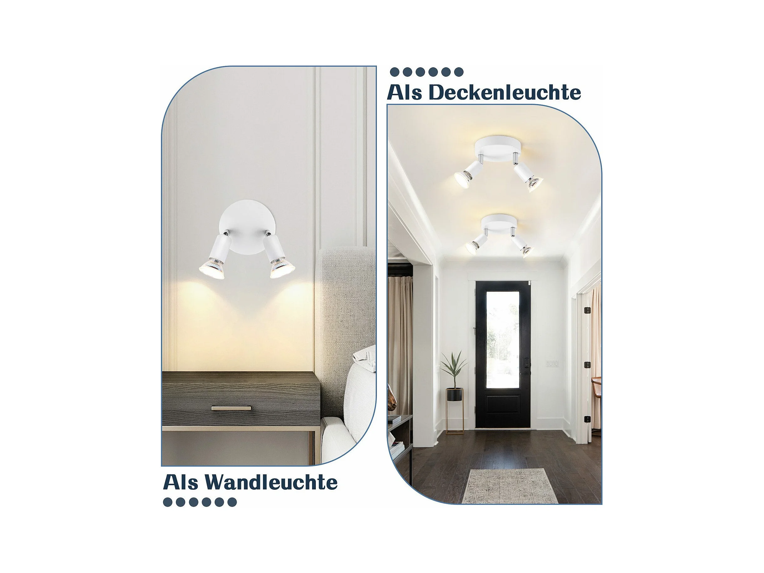 NETTLIFE Plafonnier 2 Spots de Plafond Blanc - GU10 Métal Moderne Pivotant 180°Intérieur MAX.25W pour Salon Couloir Chambre Cuisine (sans Ampoule)