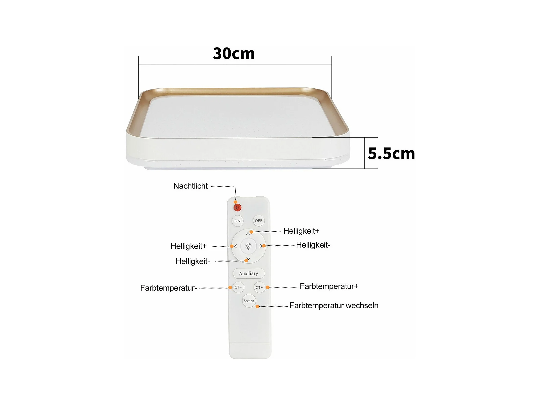 NETTLIFE Plafonnier LED Lampe de Chambre à Coucher Dimmable avec Télécommande 30 cm Lampe de Cuisine Moderne 32 W Lampe de Salon Carrée Blanc