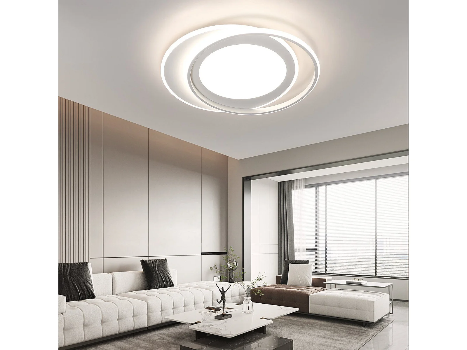 NETTLIFE Plafonnier LED Lampe de Salon Lampe avec Télécommande Chambre 66W Lampe de Cuisine Moderne Design Anneau