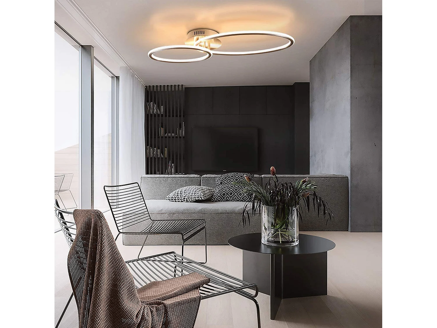 NETTLIFE Plafonnier led nettlife, plafonnier de salon, design moderne avec anneaux lumière blanche chaude 3000k lampe de chambre à coucher 29w 62,5 cm