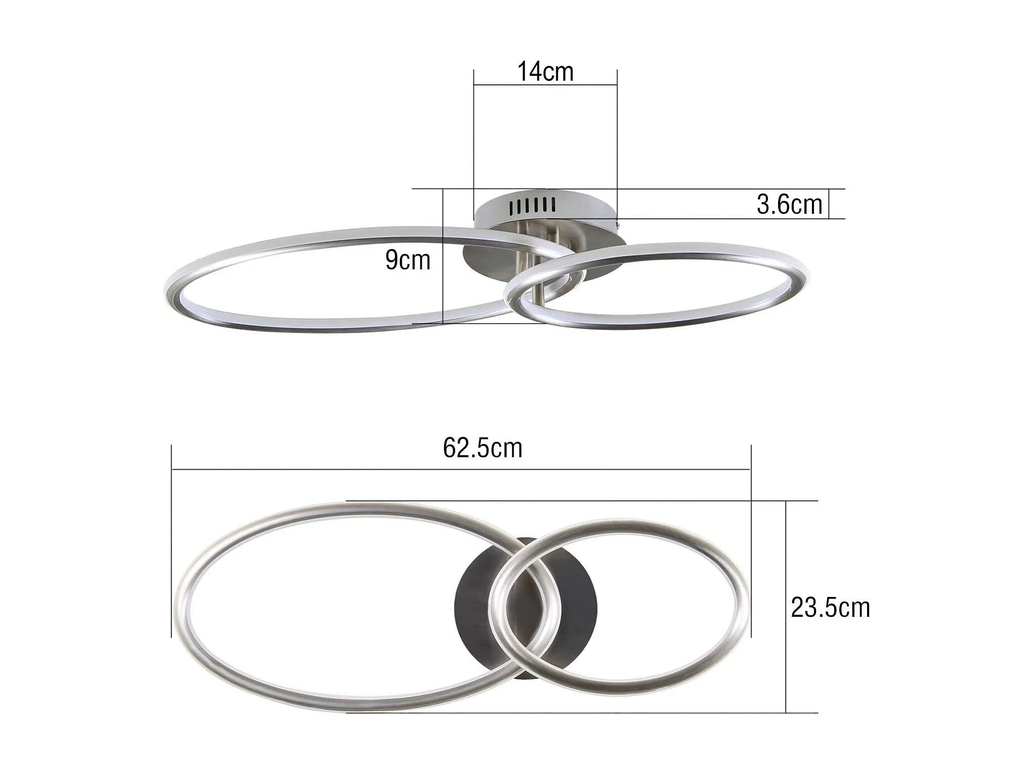 NETTLIFE Plafonnier led en intensité variable : 55 cm, plafonnier moderne à 2 anneaux, 36 w, design avec télécommande, pour chambre à coucher,