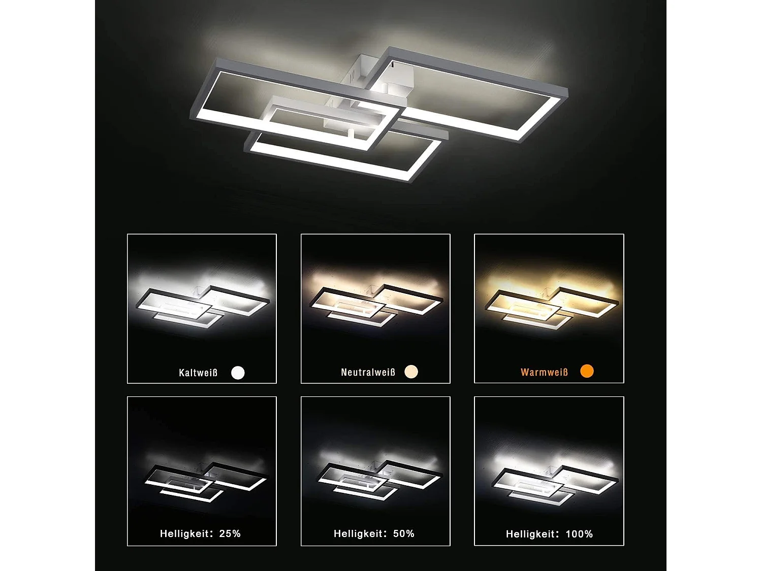 NETTLIFE Plafonnier LED Plafonnier à intensité variable avec télécommande 63W Blanc