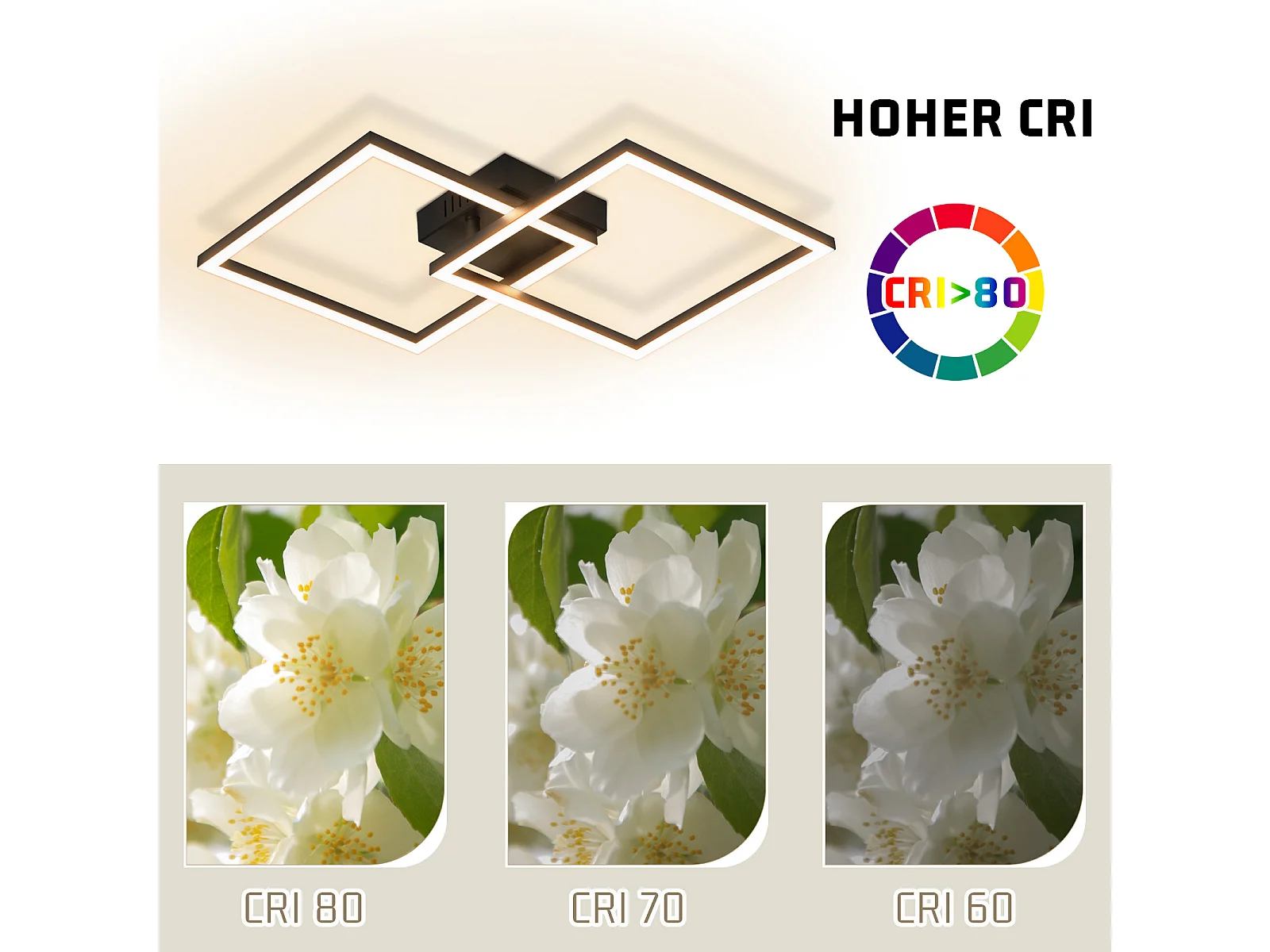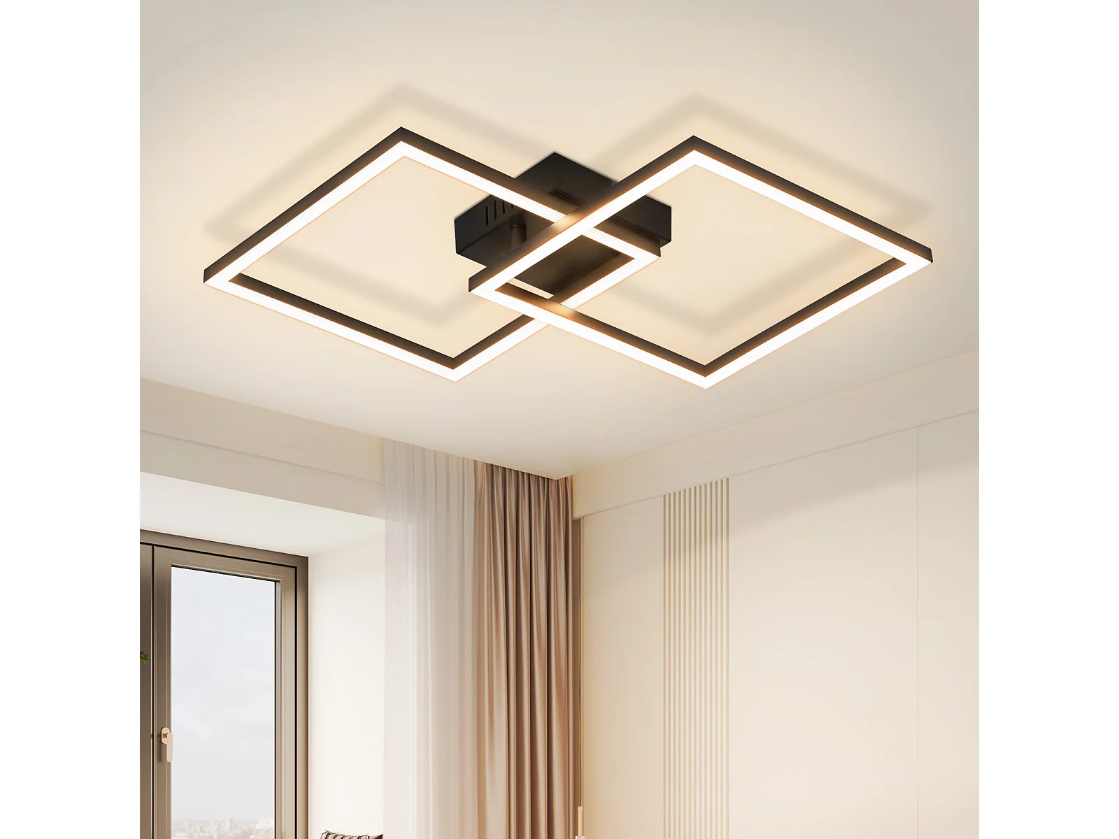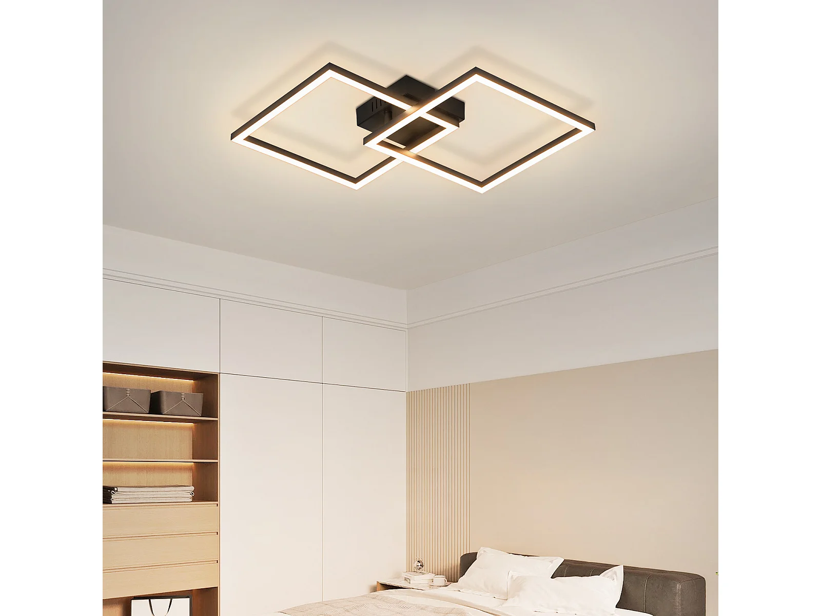 NETTLIFE Plafonnier LED plafonnier chambre 24W lampe de salon blanc chaud moderne noir carré