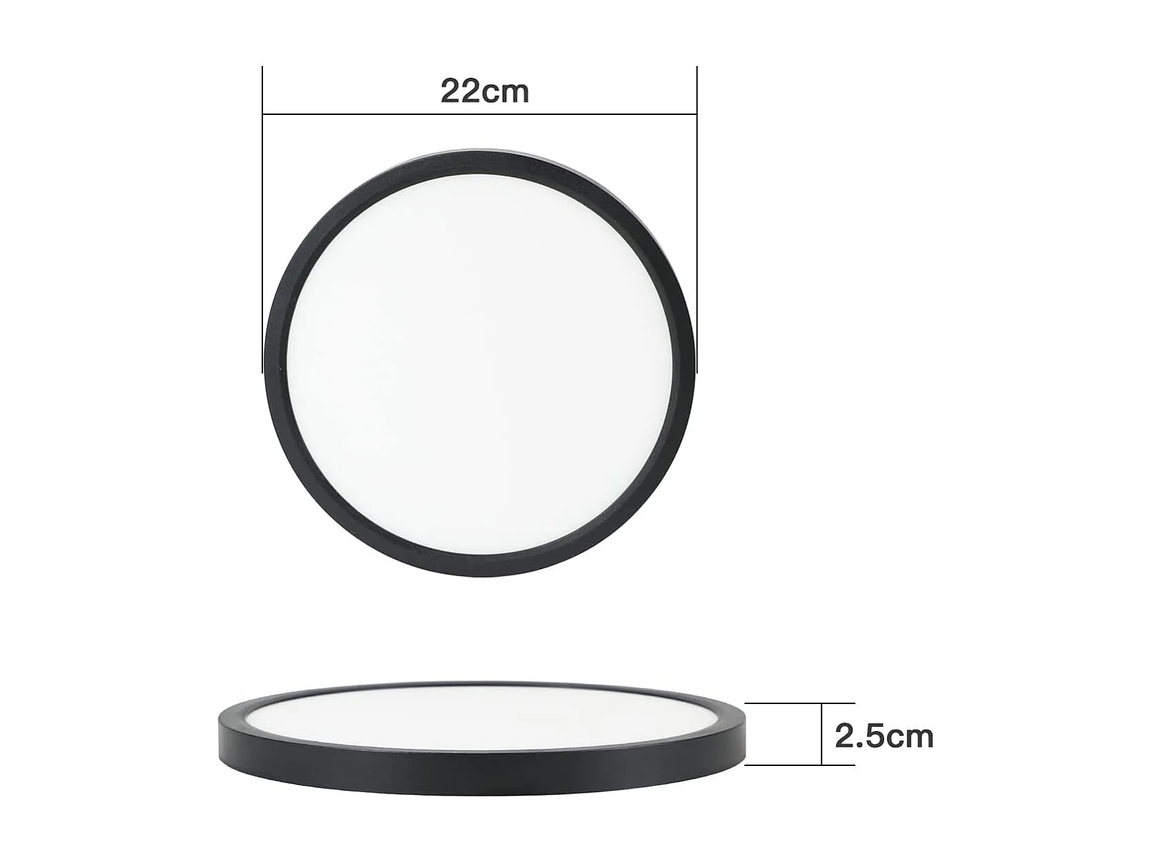 NETTLIFE Plafonnier LED plafonnier plat chambre lampe Ø22cm lampe salle de bain noir 15W IP44