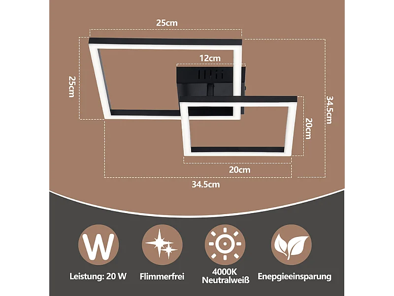 Nettlife Plafonnier LED pour cuisine - 20 W, noir, 4000 K, blanc neutre, design moderne pivotant, éclairage d'angle pour couloir, chambre