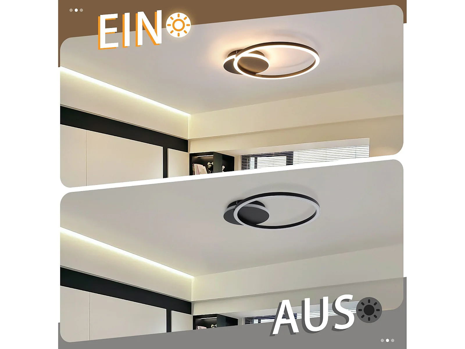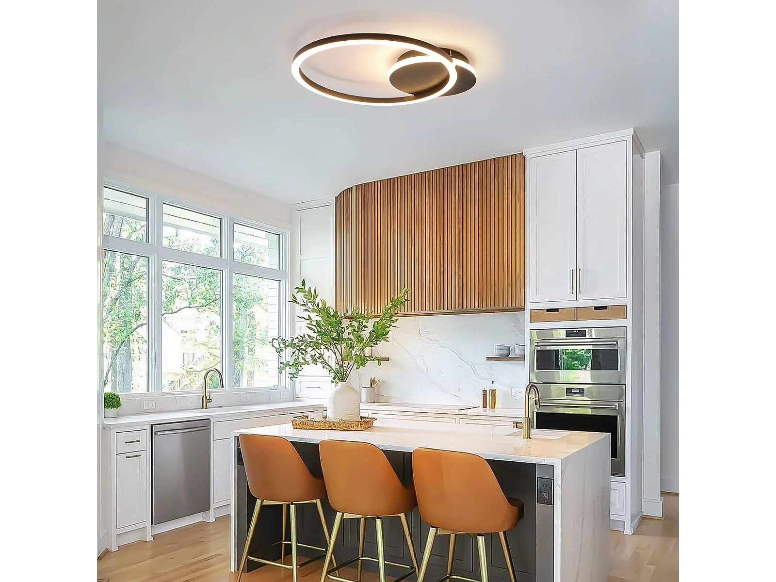NETTLIFE Plafonnier LED Salon 24W Noir Moderne 2 Anneaux 3000K Blanc Chaud