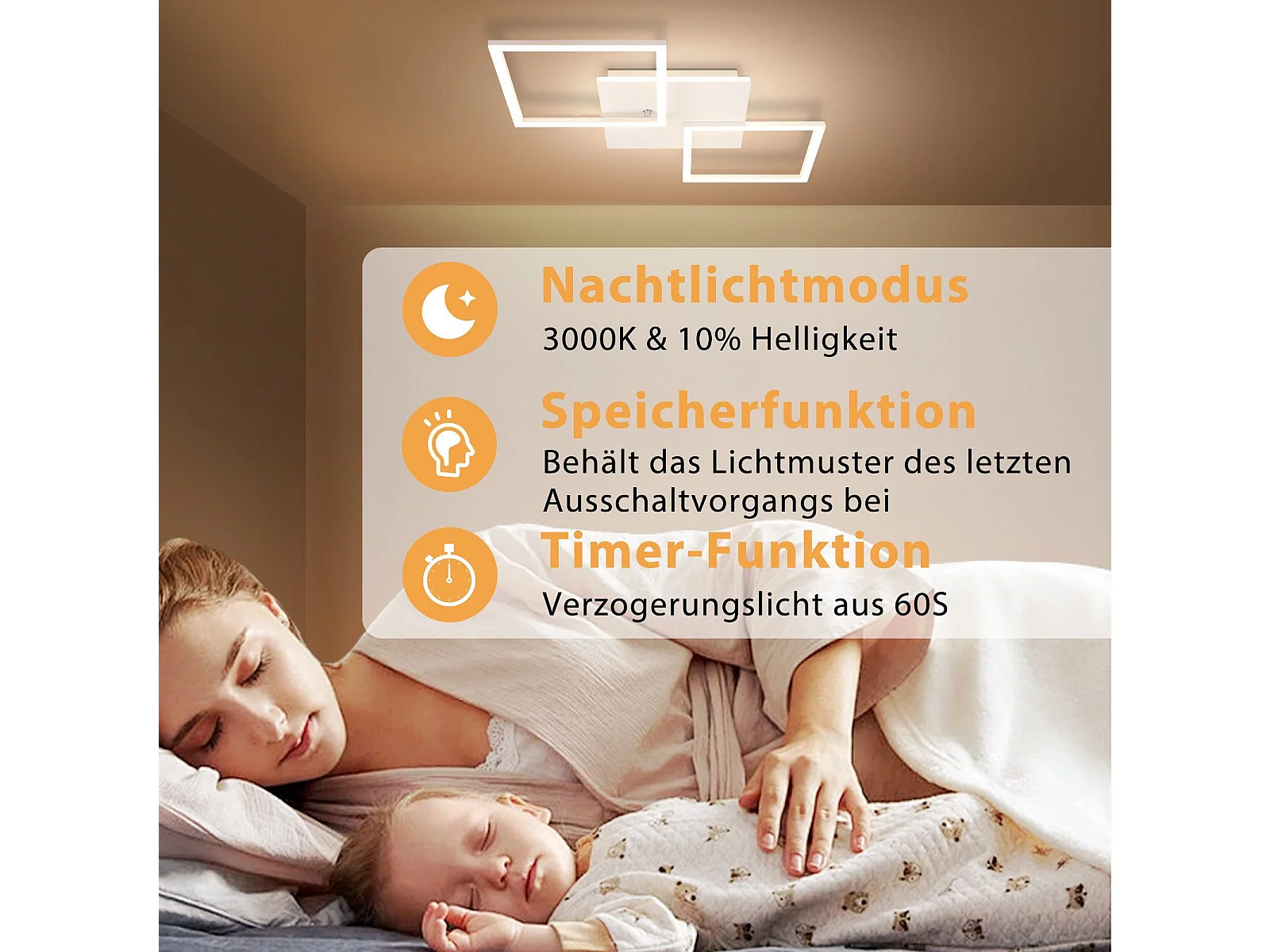 NETTLIFE Plafonnier LED Salon Blanc Dimmable Carré Moderne 32w Avec Télécommande