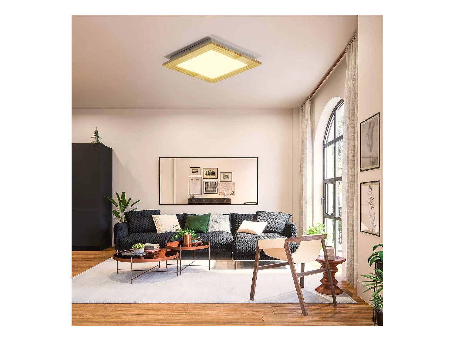 NETTLIFE Plafonnier LED Salon - Lampe de Salon Aspect Bois Ø40cm Plafonnier Chambre 43W Lampe de Chambre dimmable avec télécommande