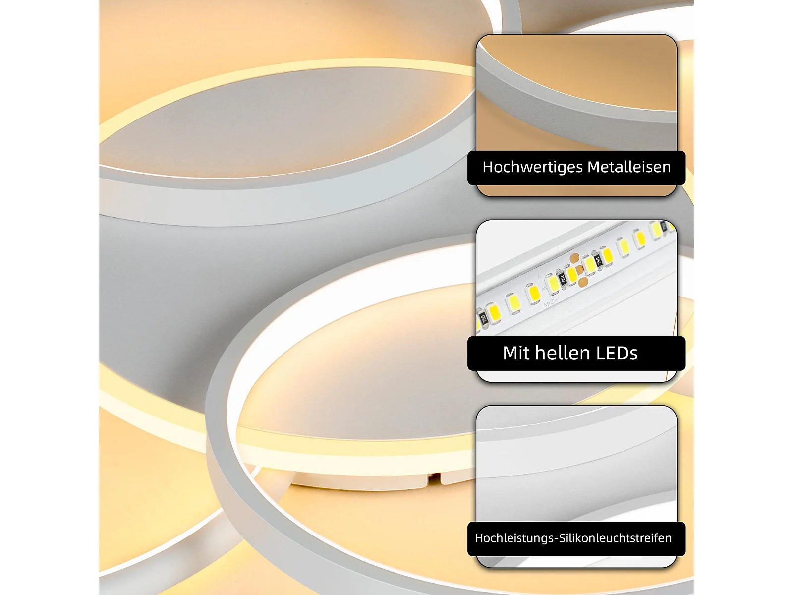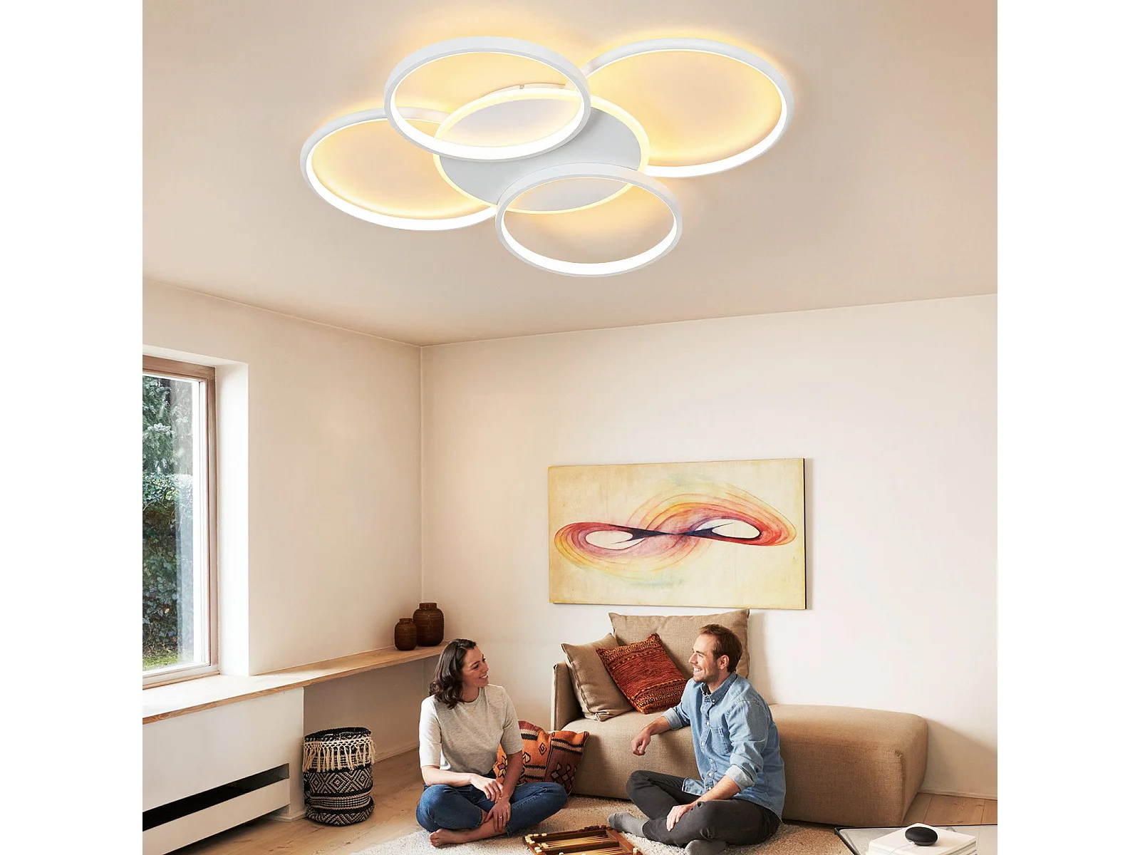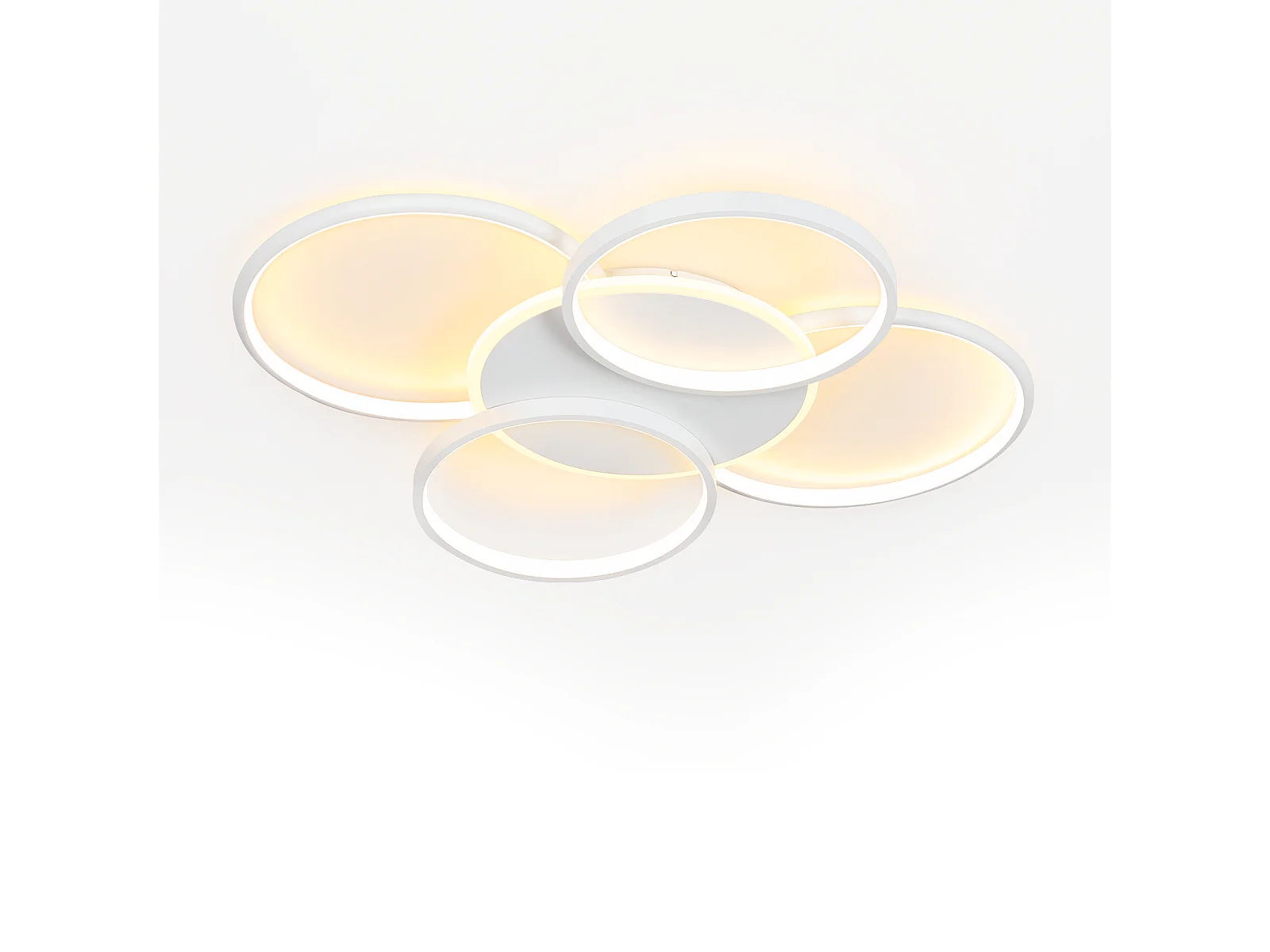 NETTLIFE Plafonnier LED Salon Dimmable 70W avec télécommande 5 anneaux Blanc Moderne Acrylique Dimmable