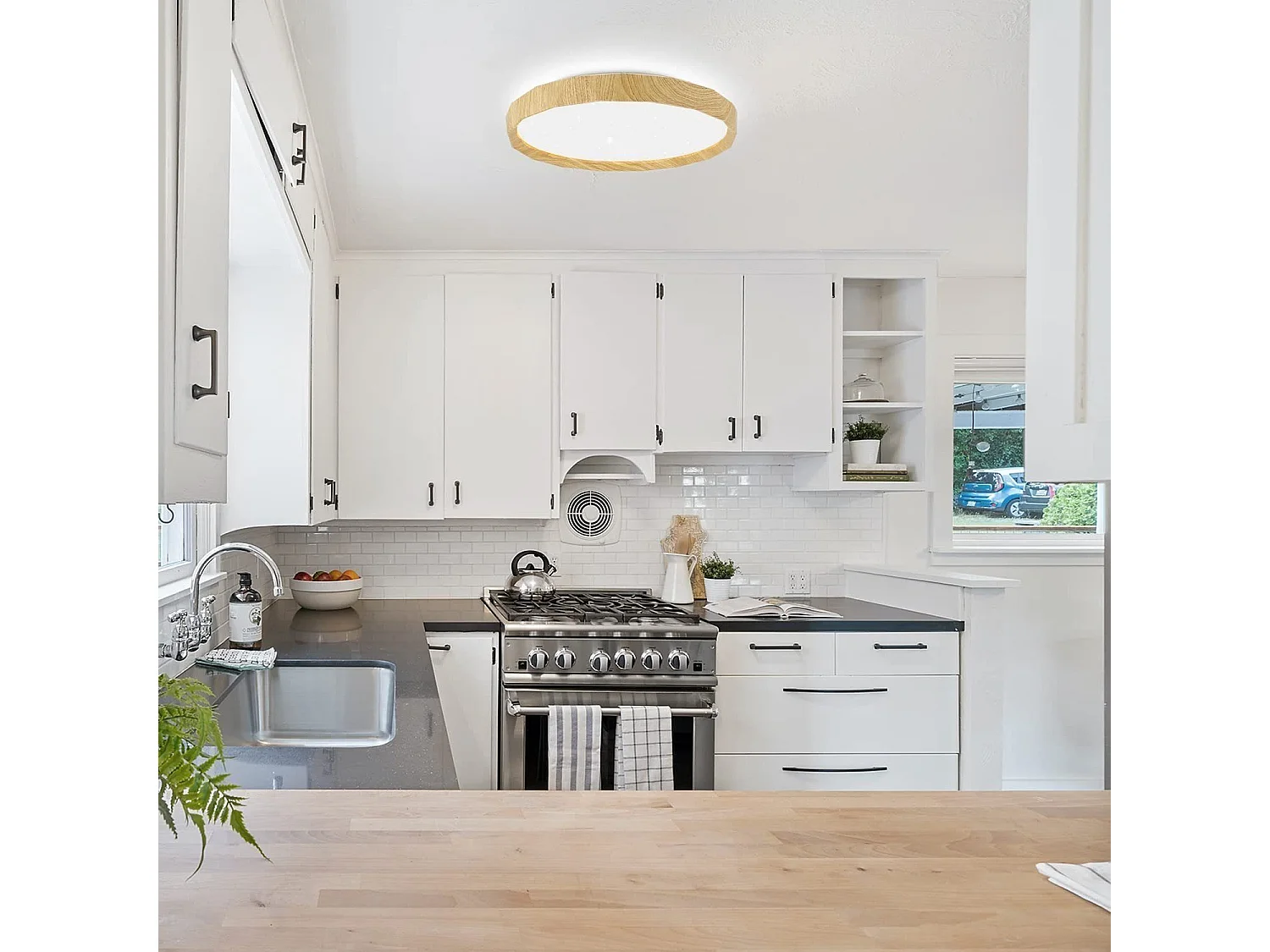 NETTLIFE Plafonnier LED Salon Bois Plat Chambre Panneau Couloir Intérieur 3000 K Blanc Chaud 30 cm 17 W pour Cuisine Salle à manger Escaliers Balcon