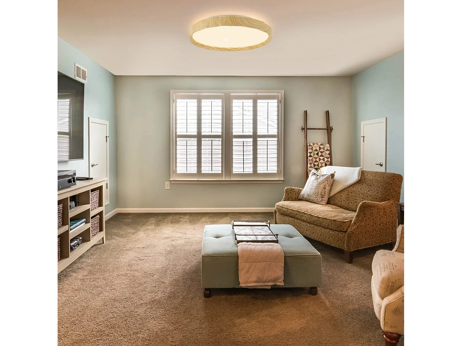NETTLIFE Plafonnier LED Bois Clair 90 cm 3000 K Blanc Chaud Lampe de Chambre au Design Rétro, pour Salon, Chambre, Couloir, Salle à Manger
