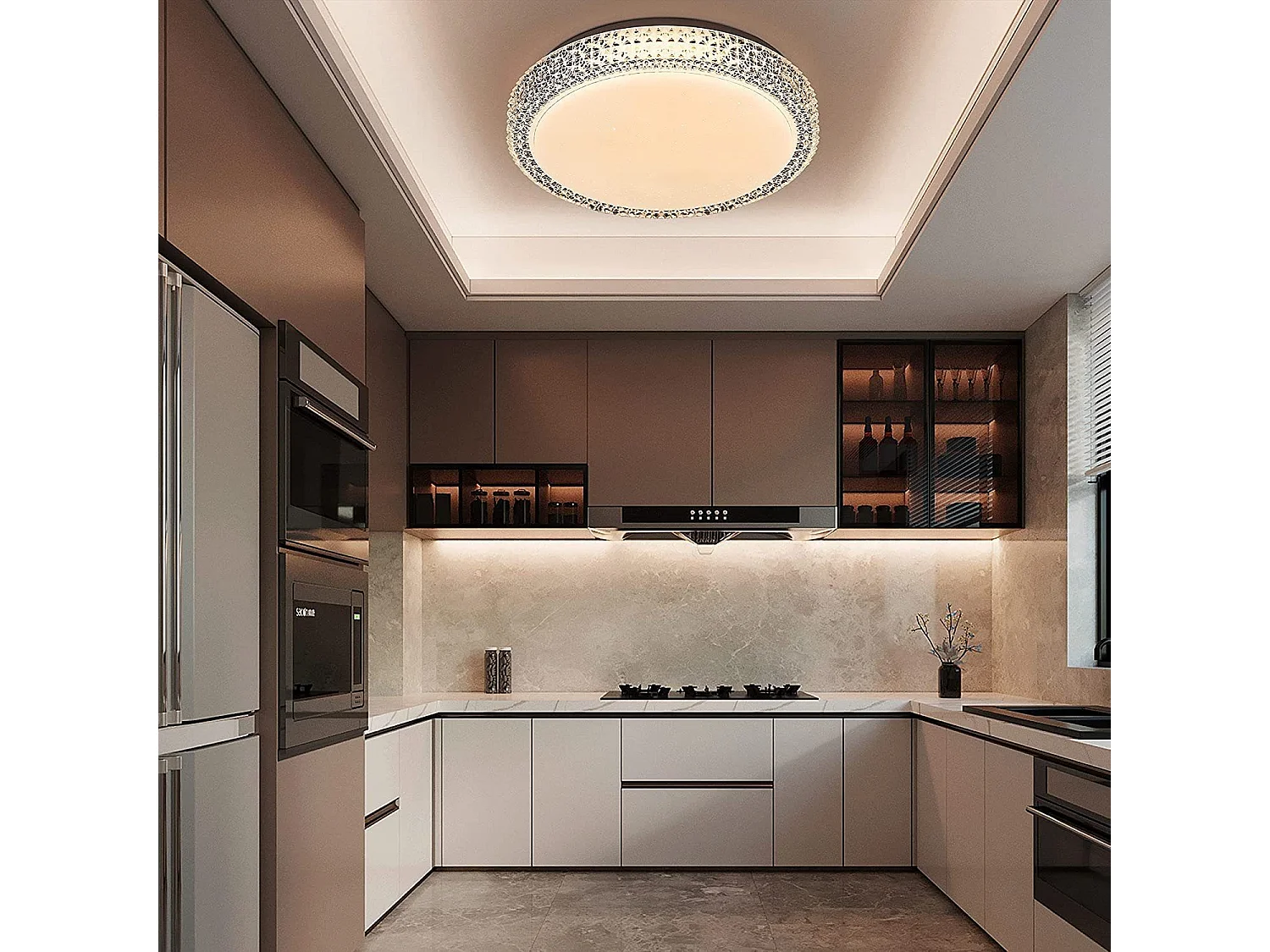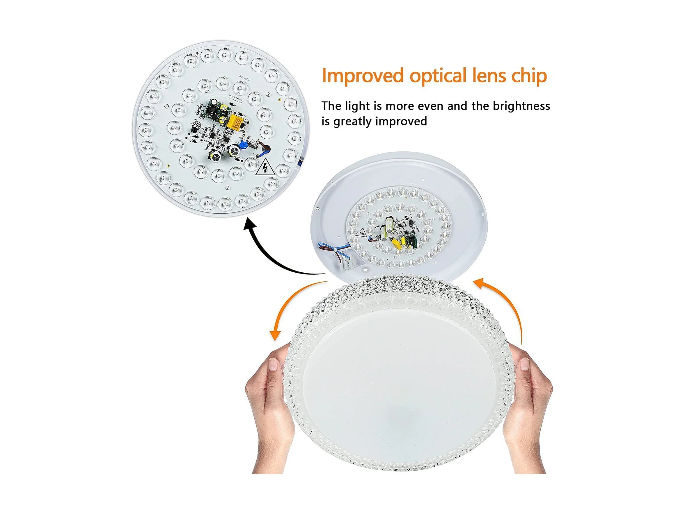 NETTLIFE Plafonnier LEDavec télécommande à intensité variable 18W, diamètre 30cm, ciel étoilé en cristal moderne, adapté pour chambre à coucher, salon