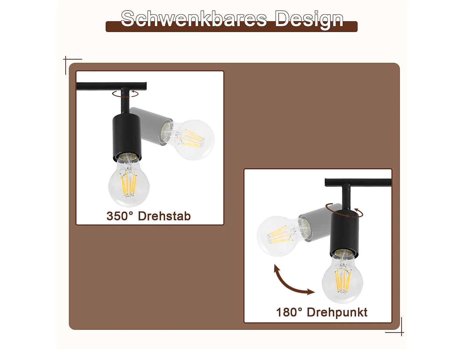 Spot De Plafond Vintage Noir 4 Flammes E27 Pivotant 350° Industriel Pivotant