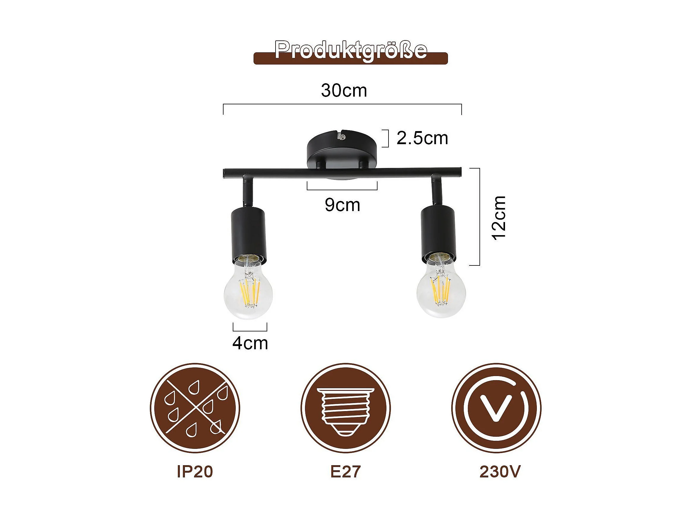 NETTLIFE Plafonnier plafonnier noir 2 ampoules Spot de plafond E27 vintage orientable 350°industriels