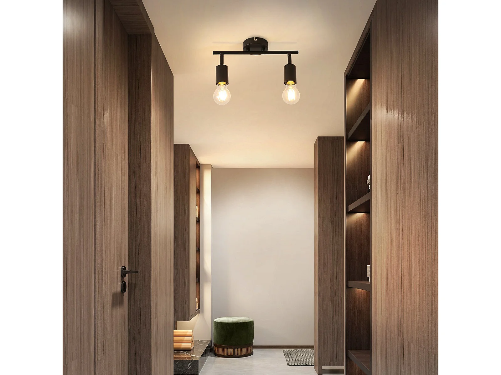 NETTLIFE Spot de plafond 2 flammes vintage noir E27 orientable 350° lampe de couloir rétro métal industriel