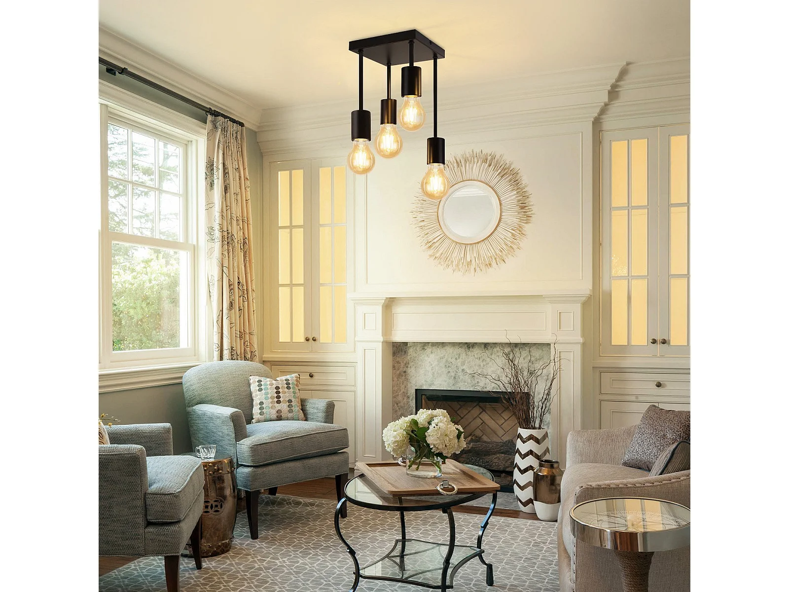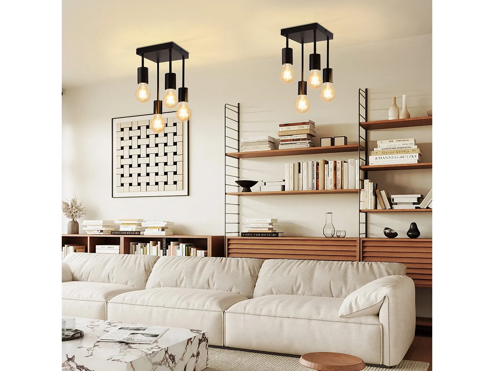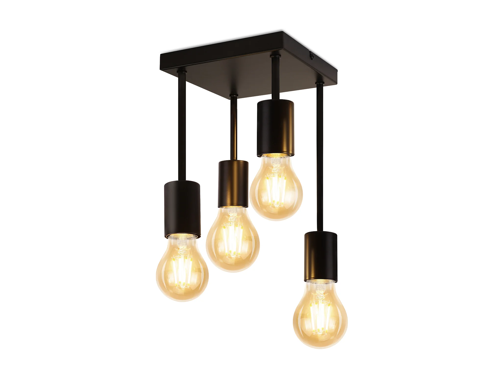NETTLIFE Plafonnier plafonnier noir vintage E27 4 ampoules rétro métal Sans ampoules