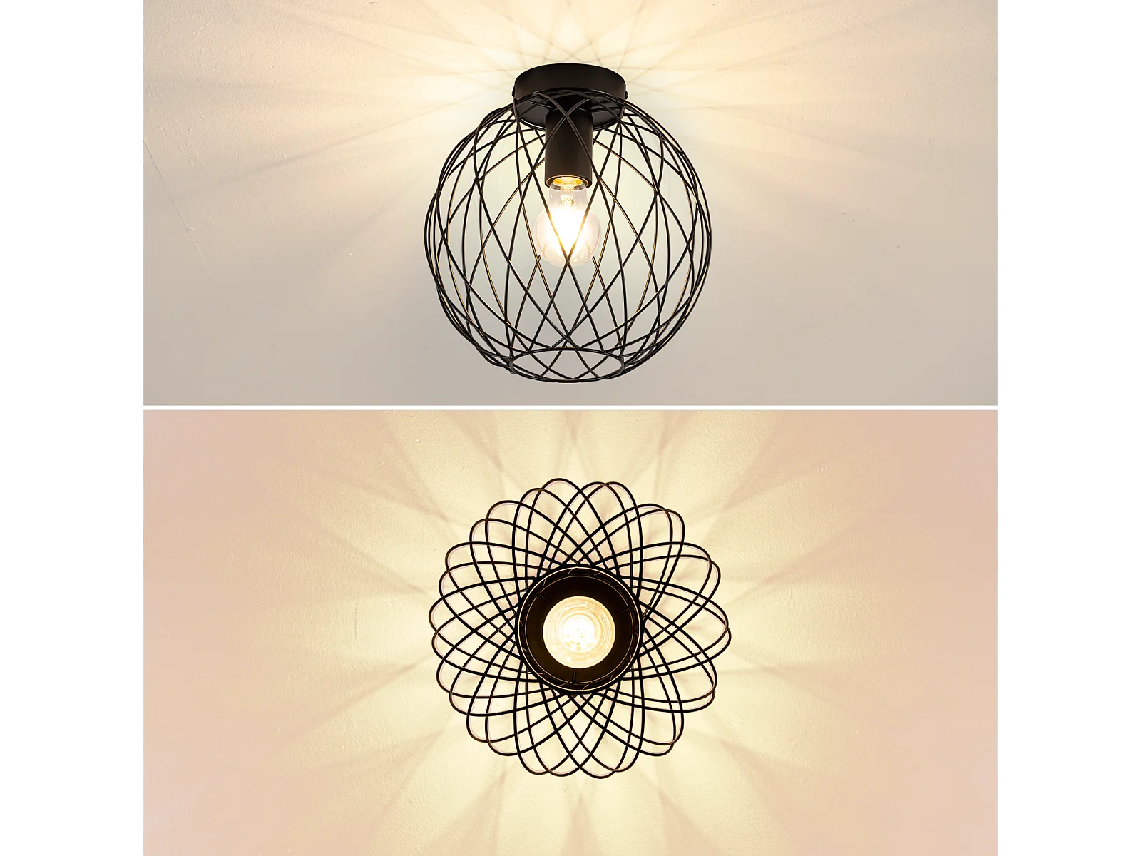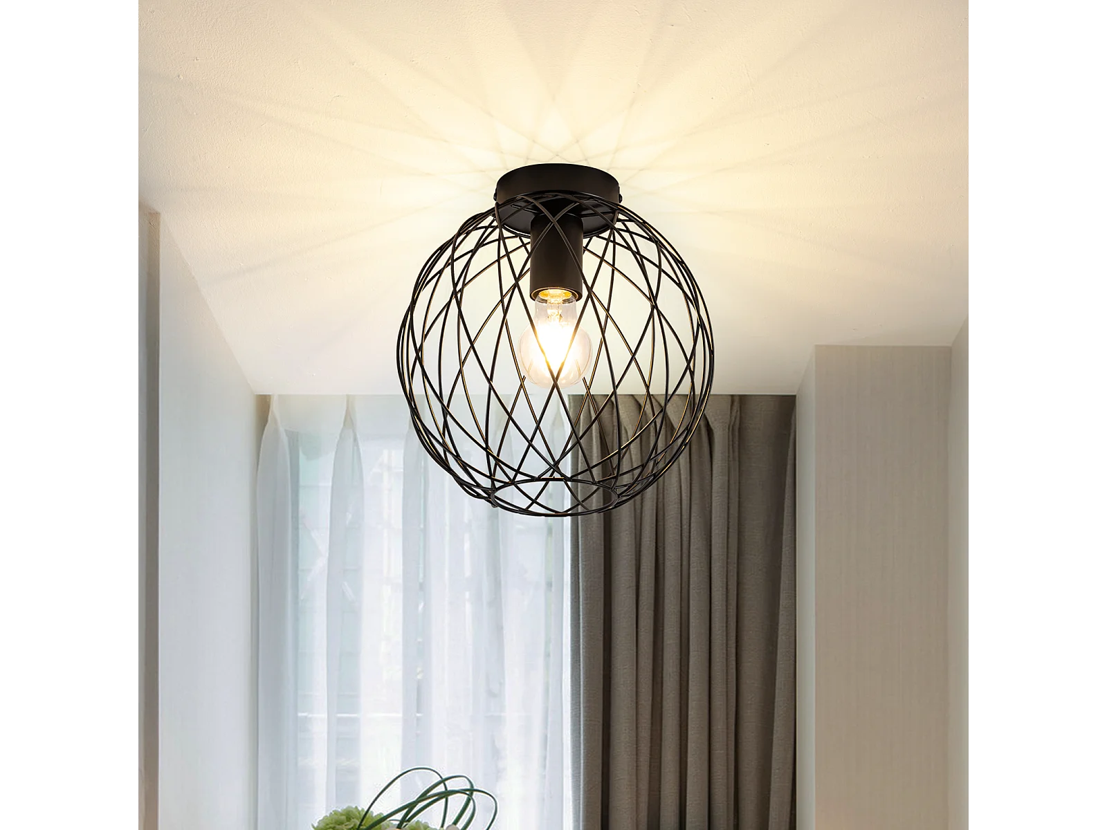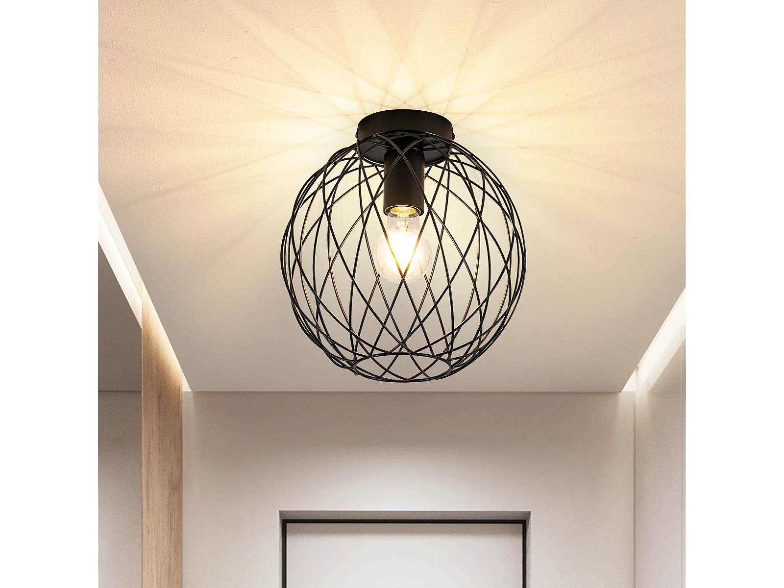 NETTLIFE Plafonnier plafonnier vintage noir industriel - lampe de couloir E27 1 ampoule rétro cage métal