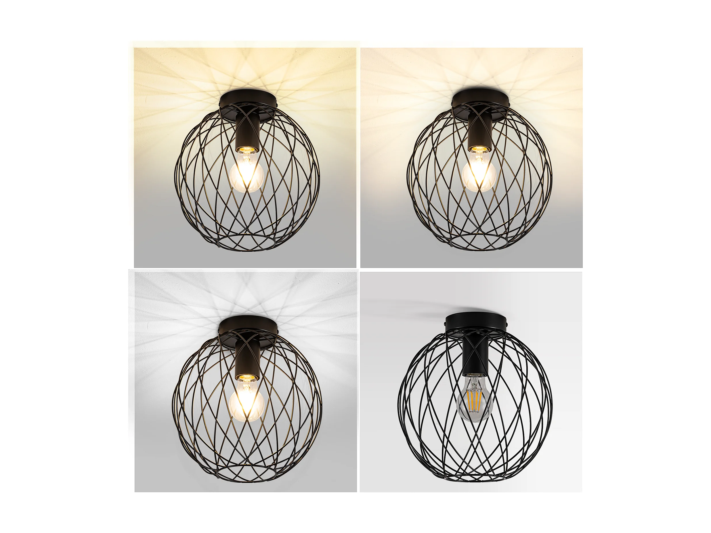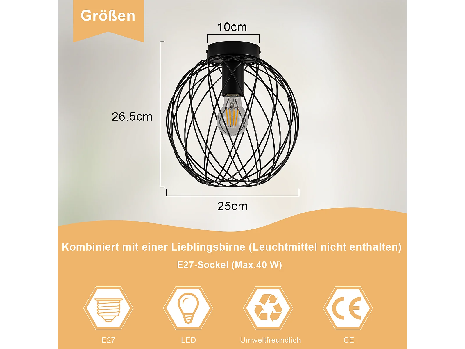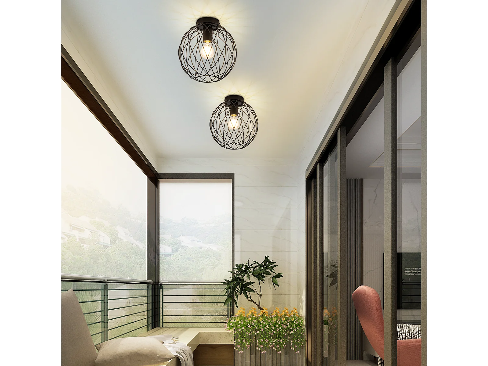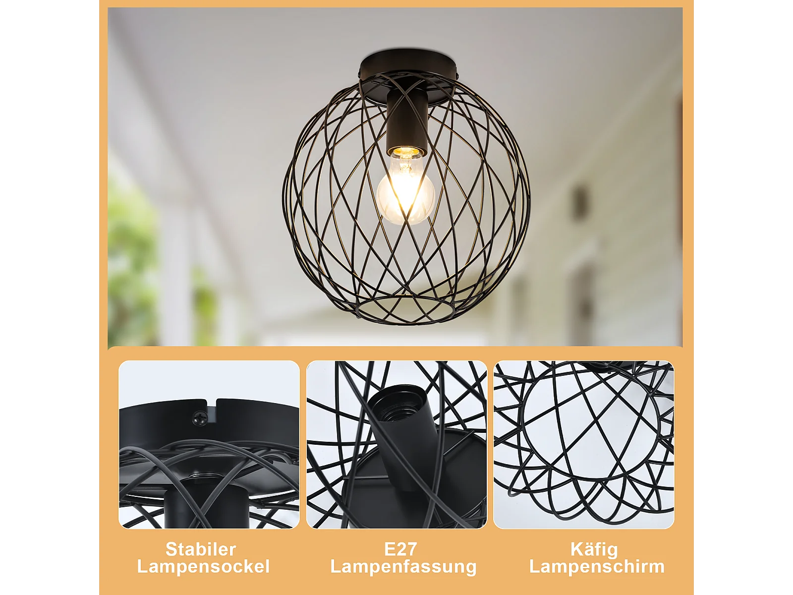 NETTLIFE Plafonnier plafonnier vintage noir industriel - lampe de couloir E27 1 ampoule rétro cage métal