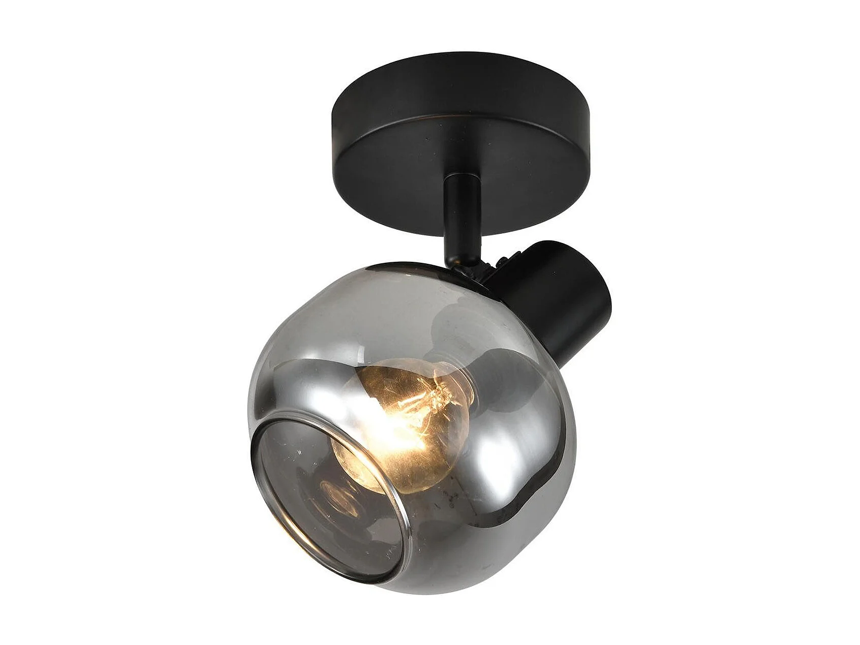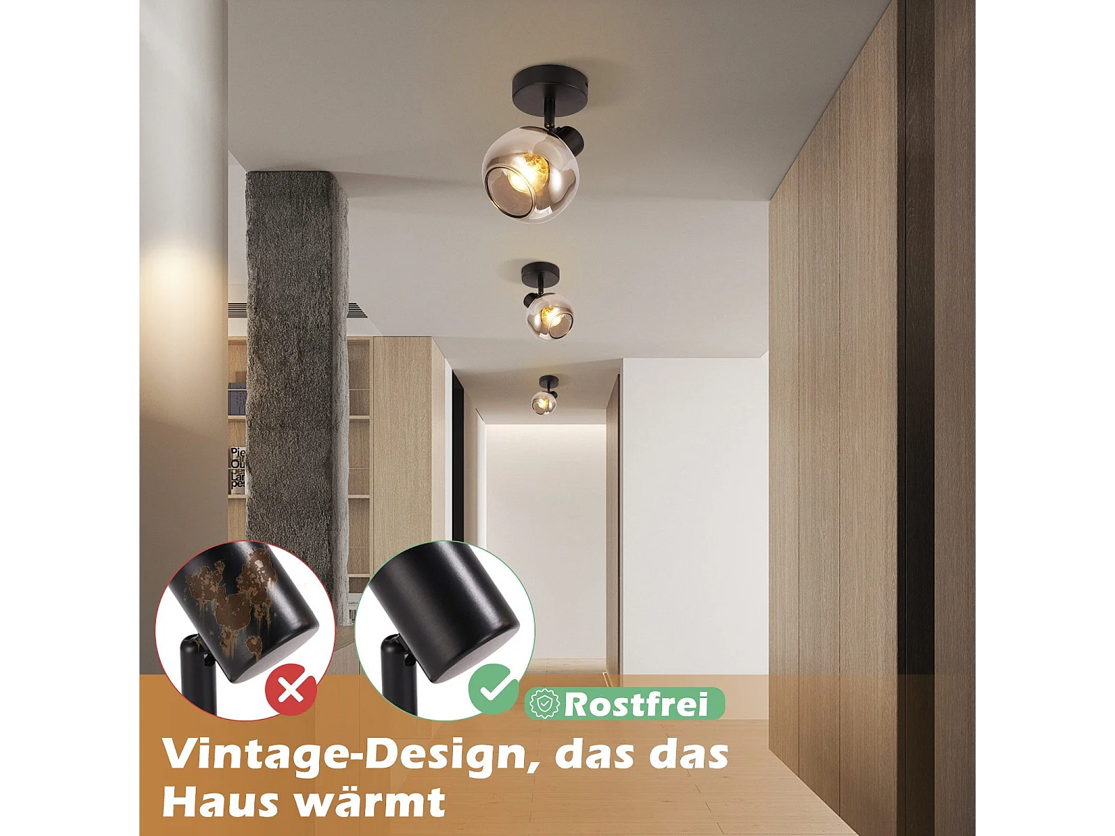 NETTLIFE Spot de plafond plafonnier vintage noir Plafonnier rétro en verre gris fumé 1 lampe E14