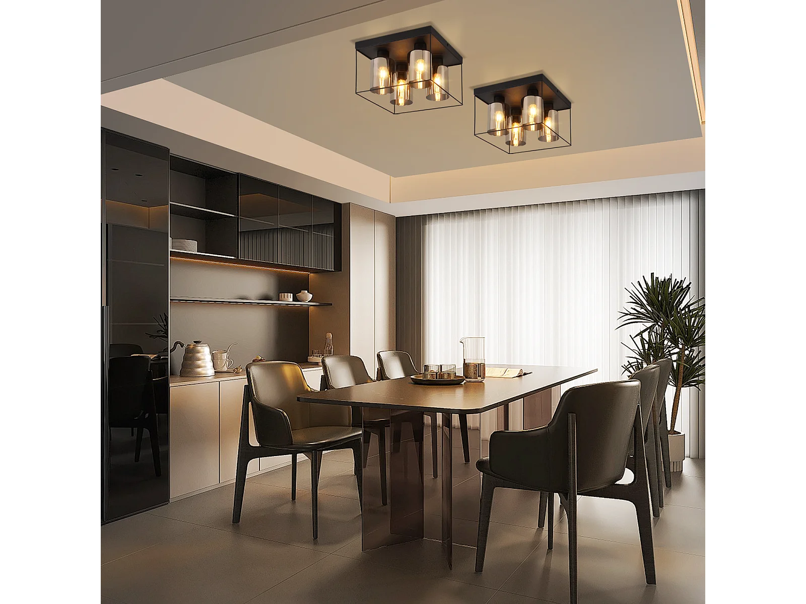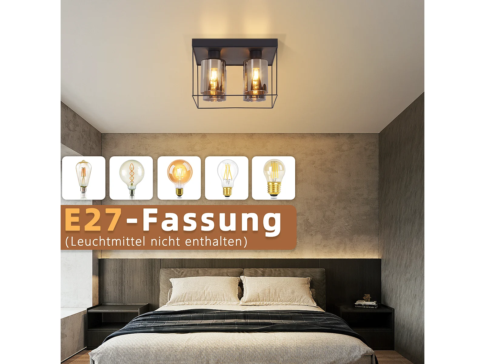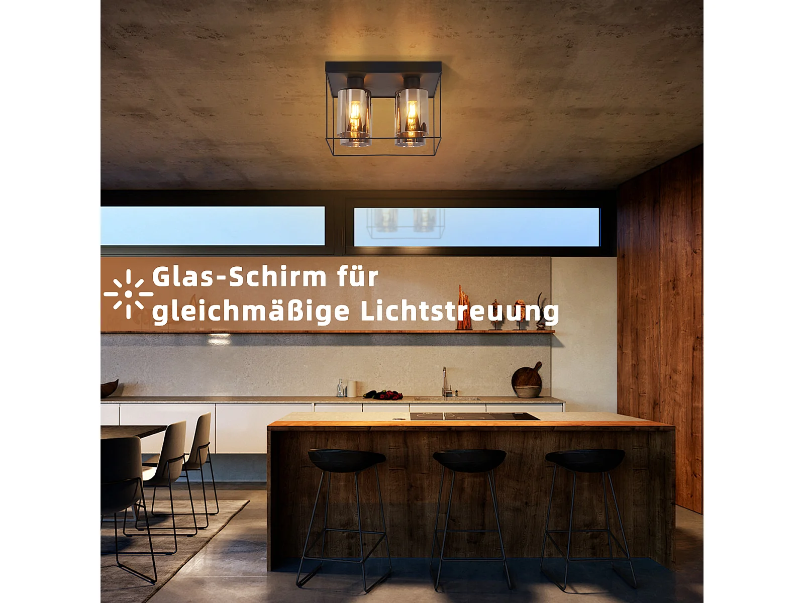 NETTLIFE Plafonnier salon plafonnier verre 4 ampoules E27 vintage noir style industriel métal rétro