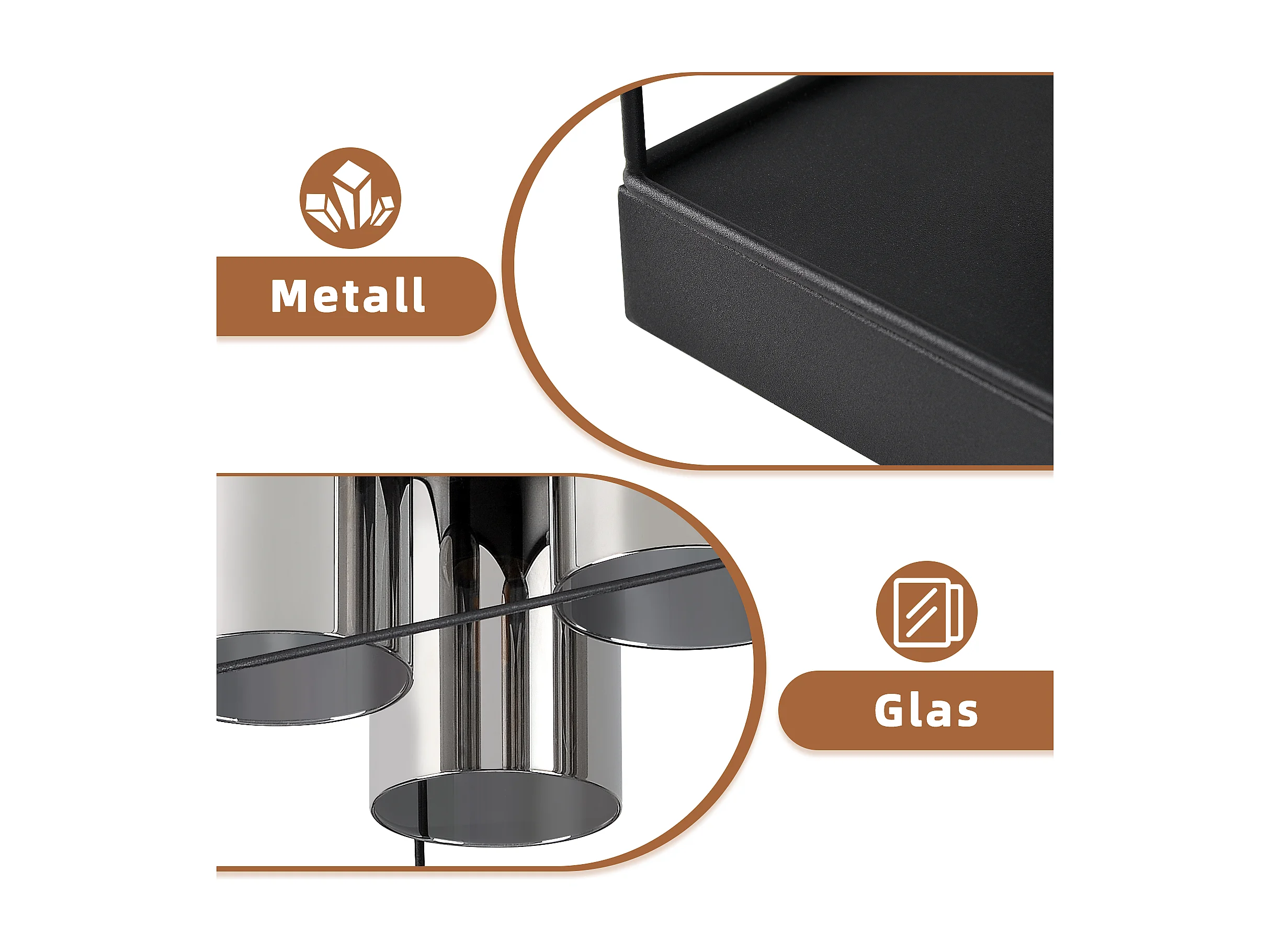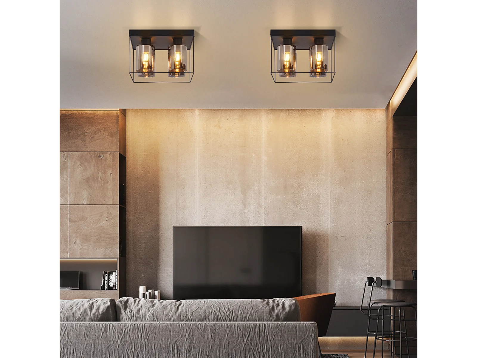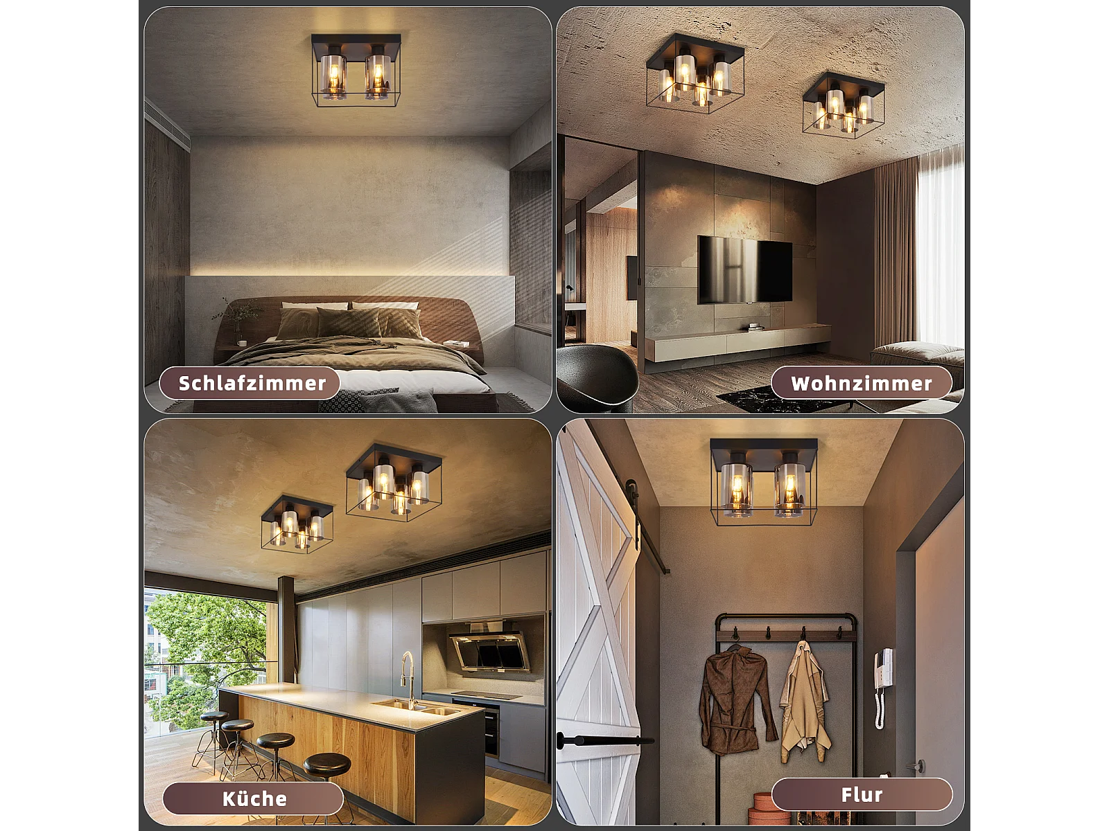 NETTLIFE Plafonnier salon plafonnier verre 4 ampoules E27 vintage noir style industriel métal rétro