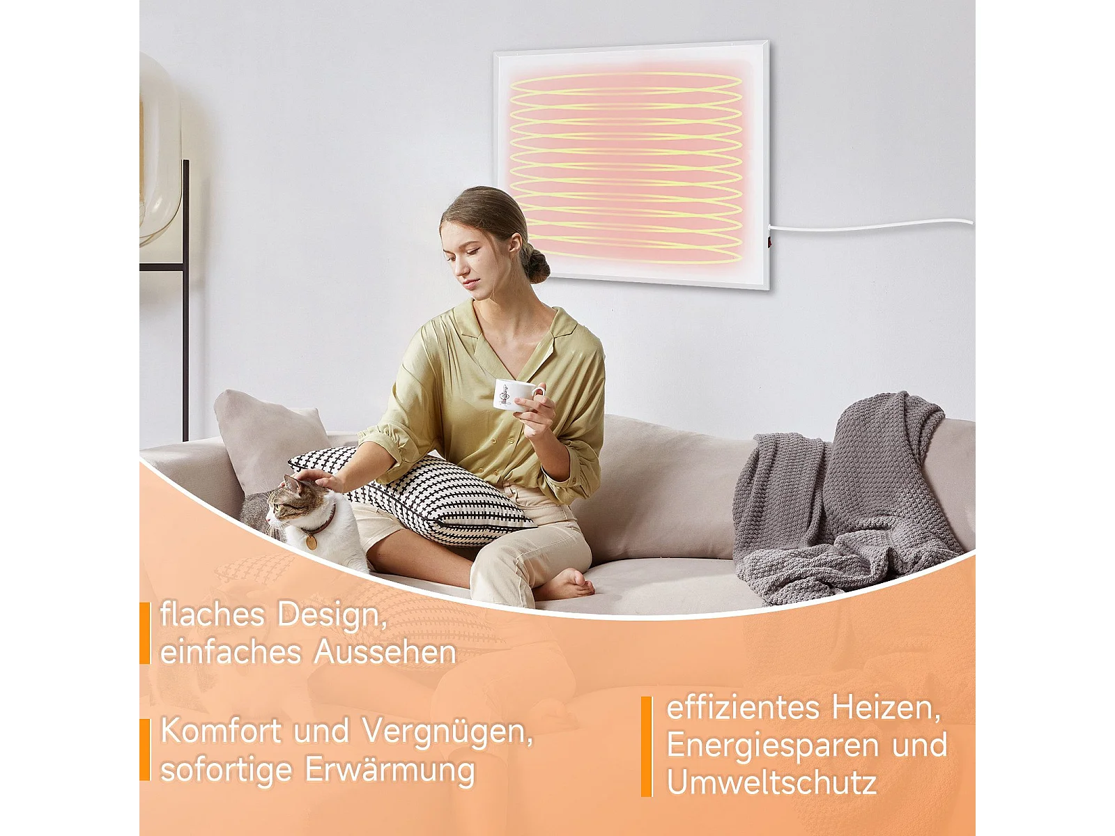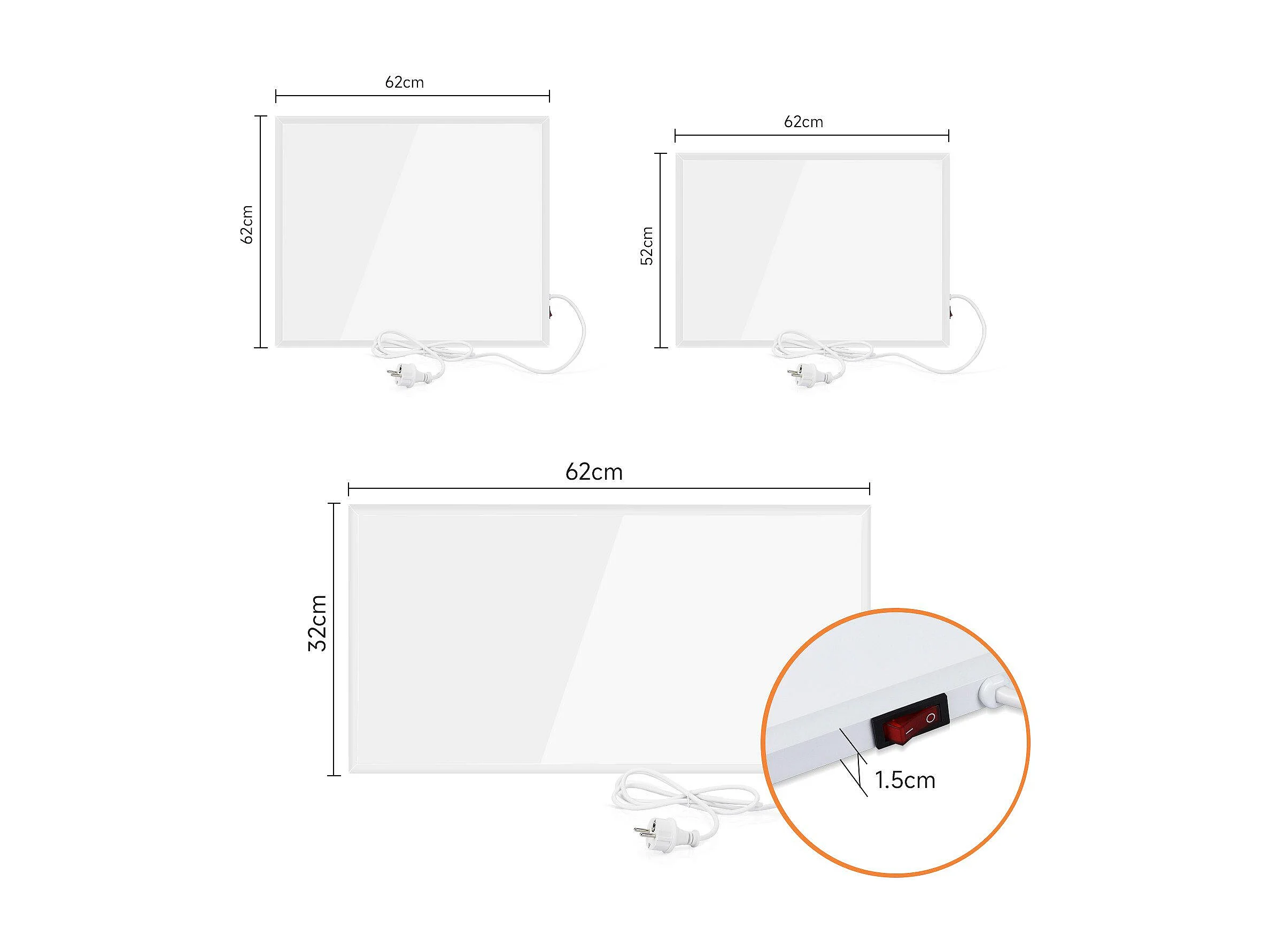 NETTLIFE Radiateur Infrarouge Mural, Economie mural infrarouge - 350W électrique mural avec protection contre la surchauffe,62x62x1.5cm
