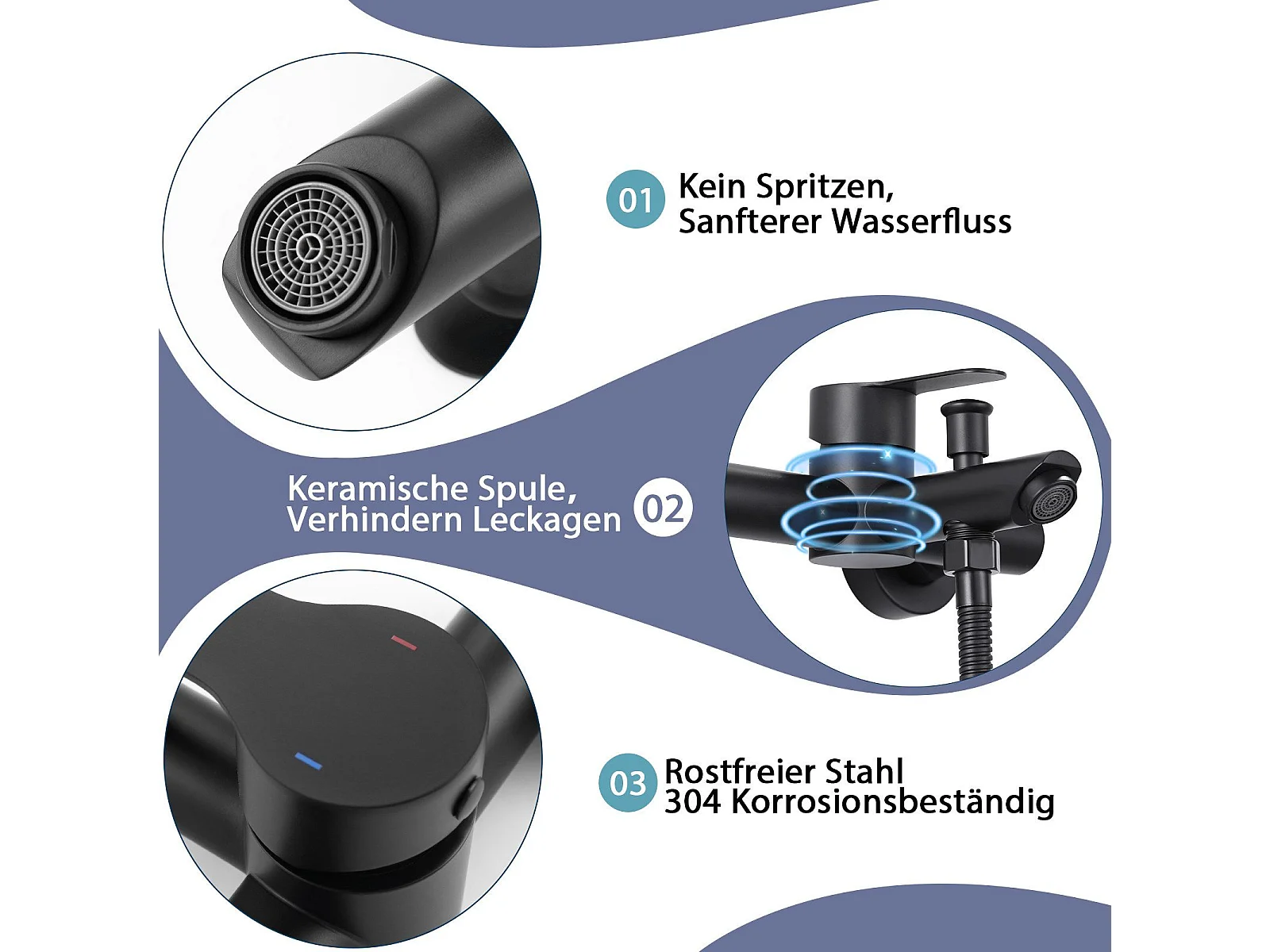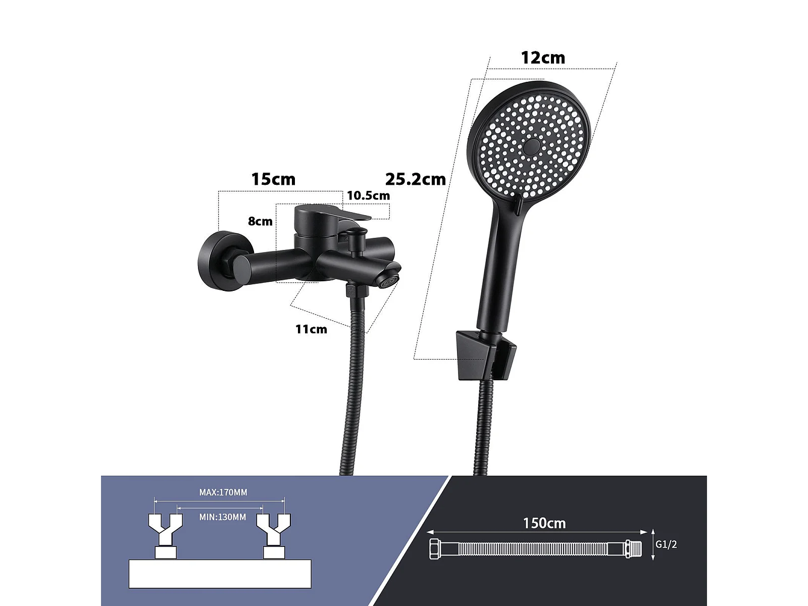 NETTLIFE Robinet de baignoire robinet noir baignoire - robinet de douche avec douche robinet de douche mitigeur monocommande avec douchette