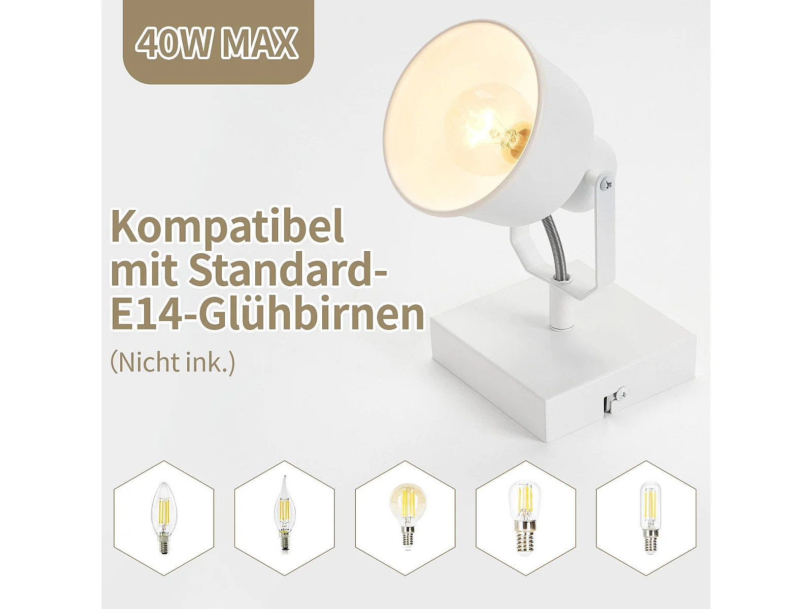 NETTLIFE Spot Mural Vintage Blanc Applique Murale E14 Réglable 350° Abat-Jour en Métal Rétro Bar Salle à Manger Hôtel Max.