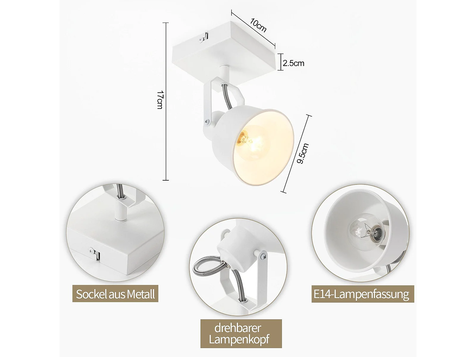 NETTLIFE Spot de plafond 1 flamme applique vintage E14 design rétro de haute qualité orientable 350° MAX.40W