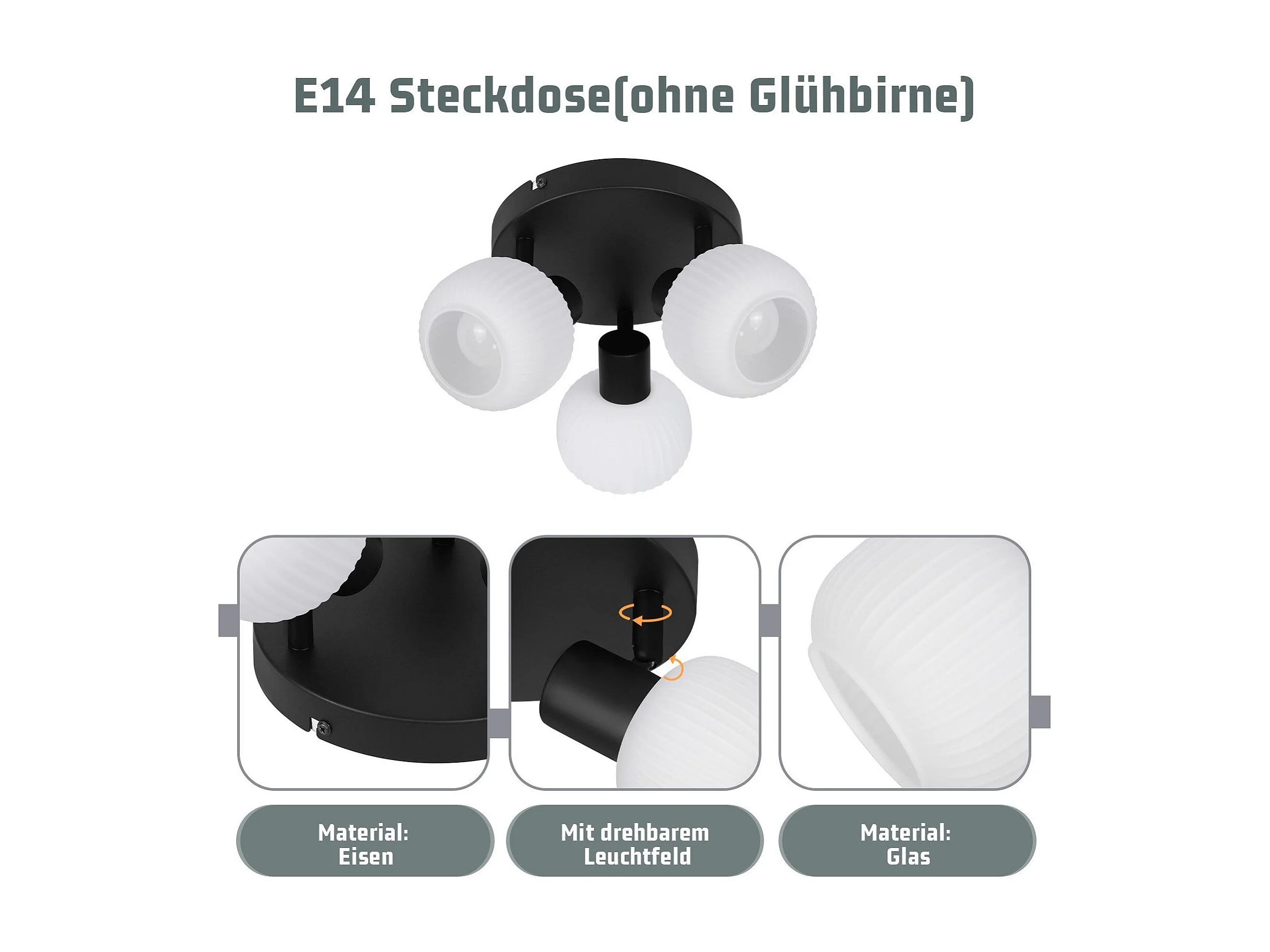NETTLIFE Spot de plafond noir E14 abat-jour en verre vintage d'intérieur Spot moderne pour chambre à coucher salon