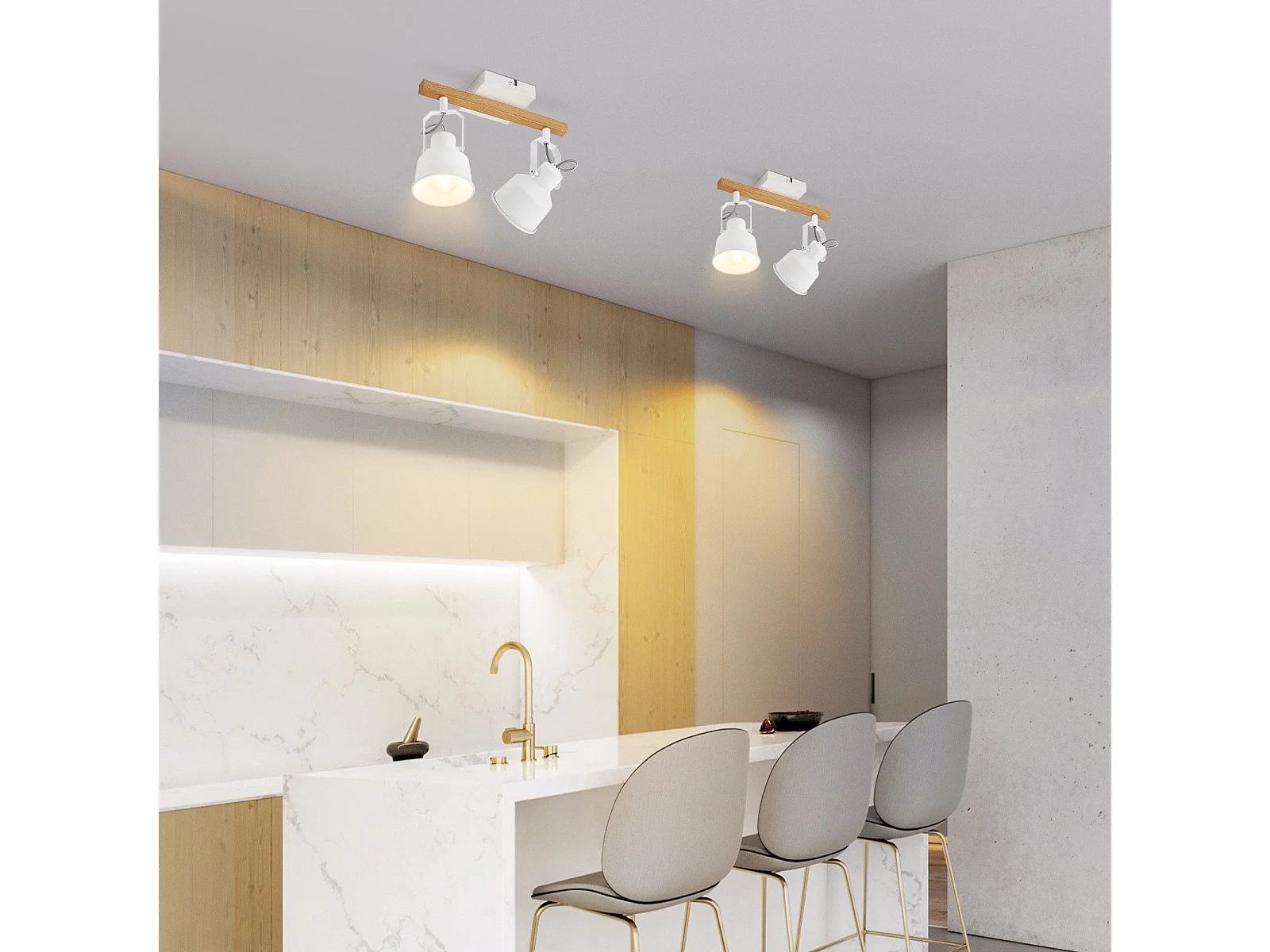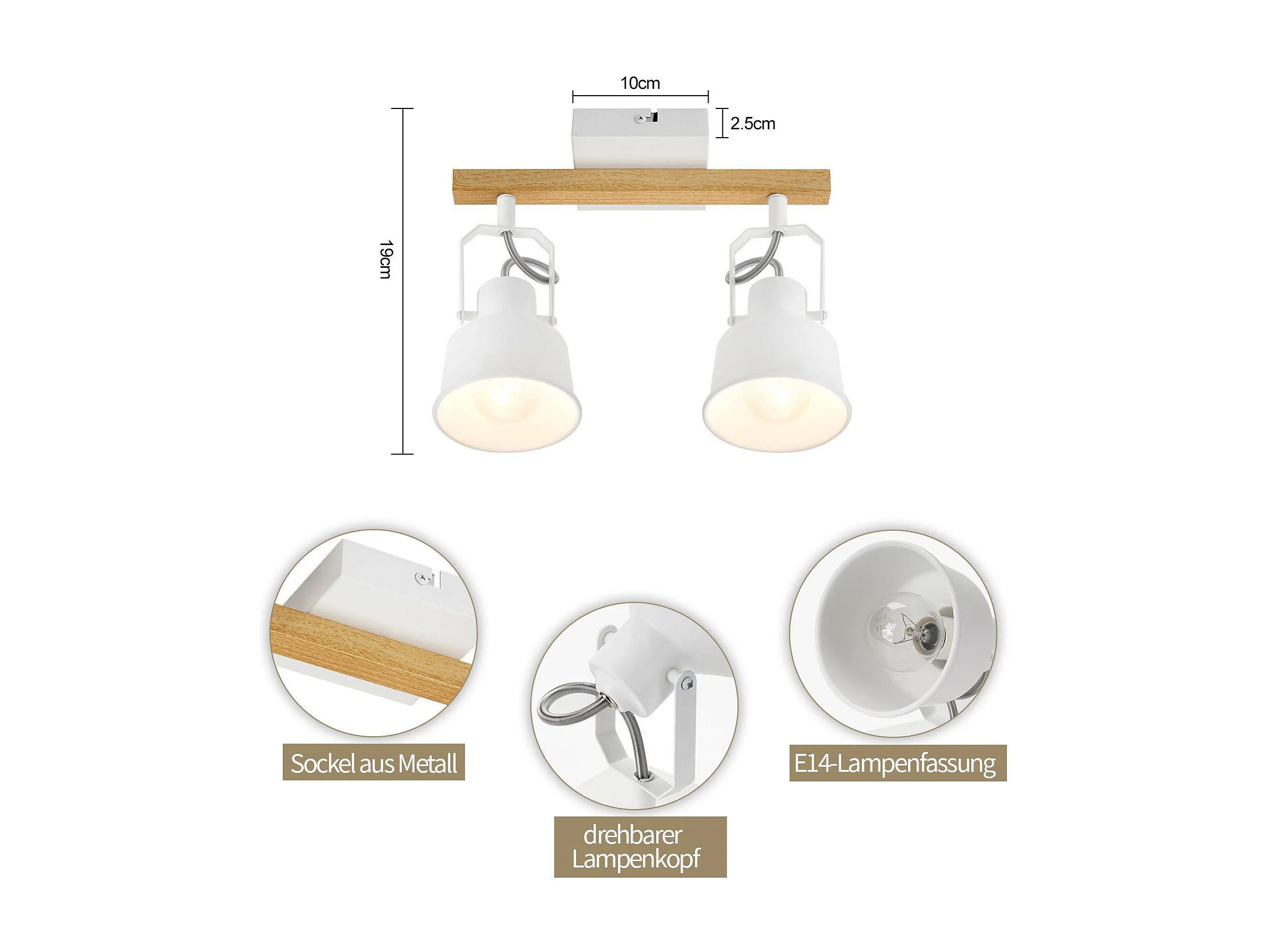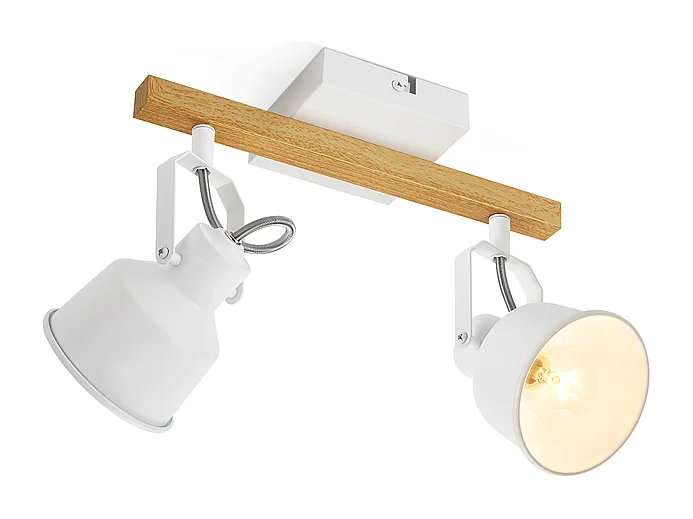 NETTLIFE Spot de Plafond 2 Flammes Orientable à 350° Vintage Douille E14 de conception de haute qualité en bois veiné