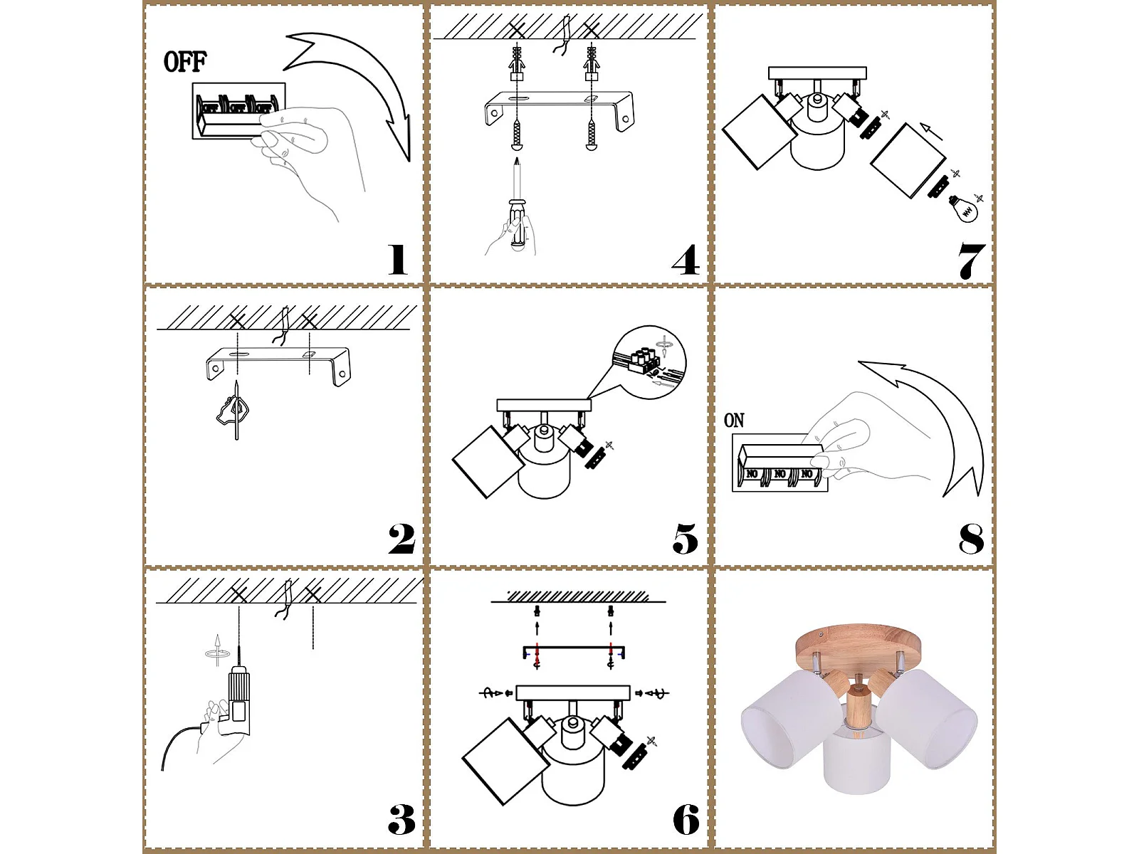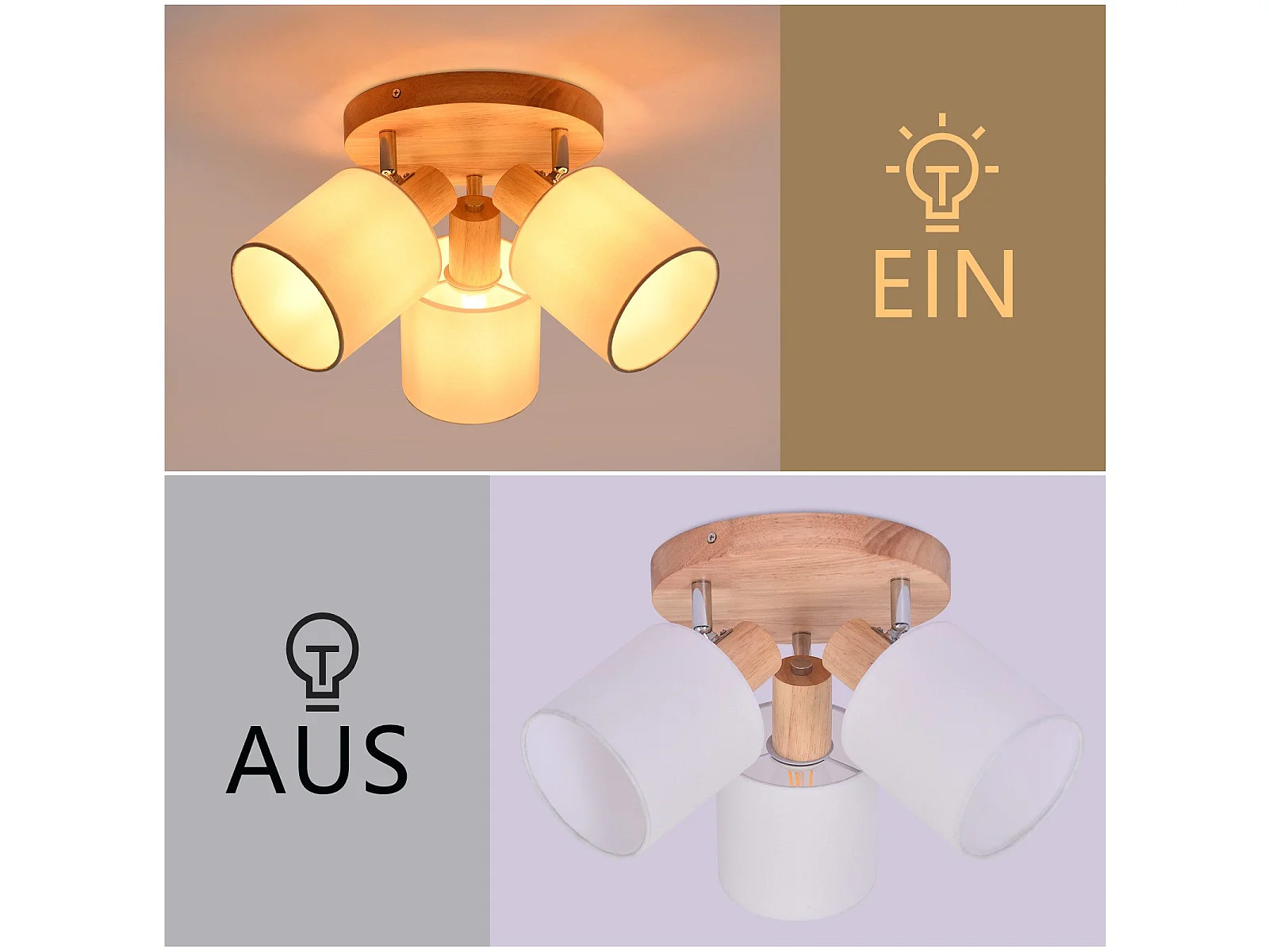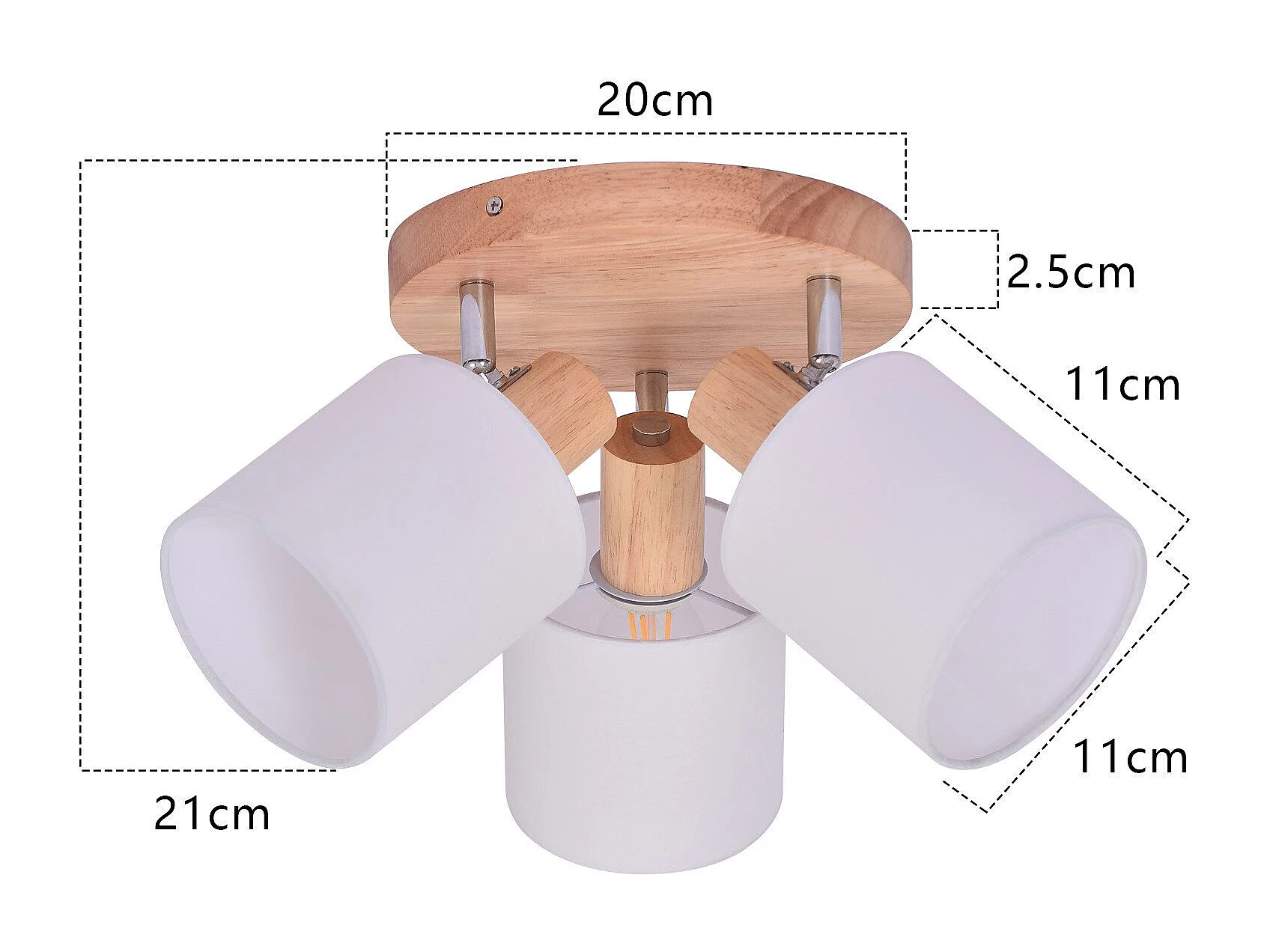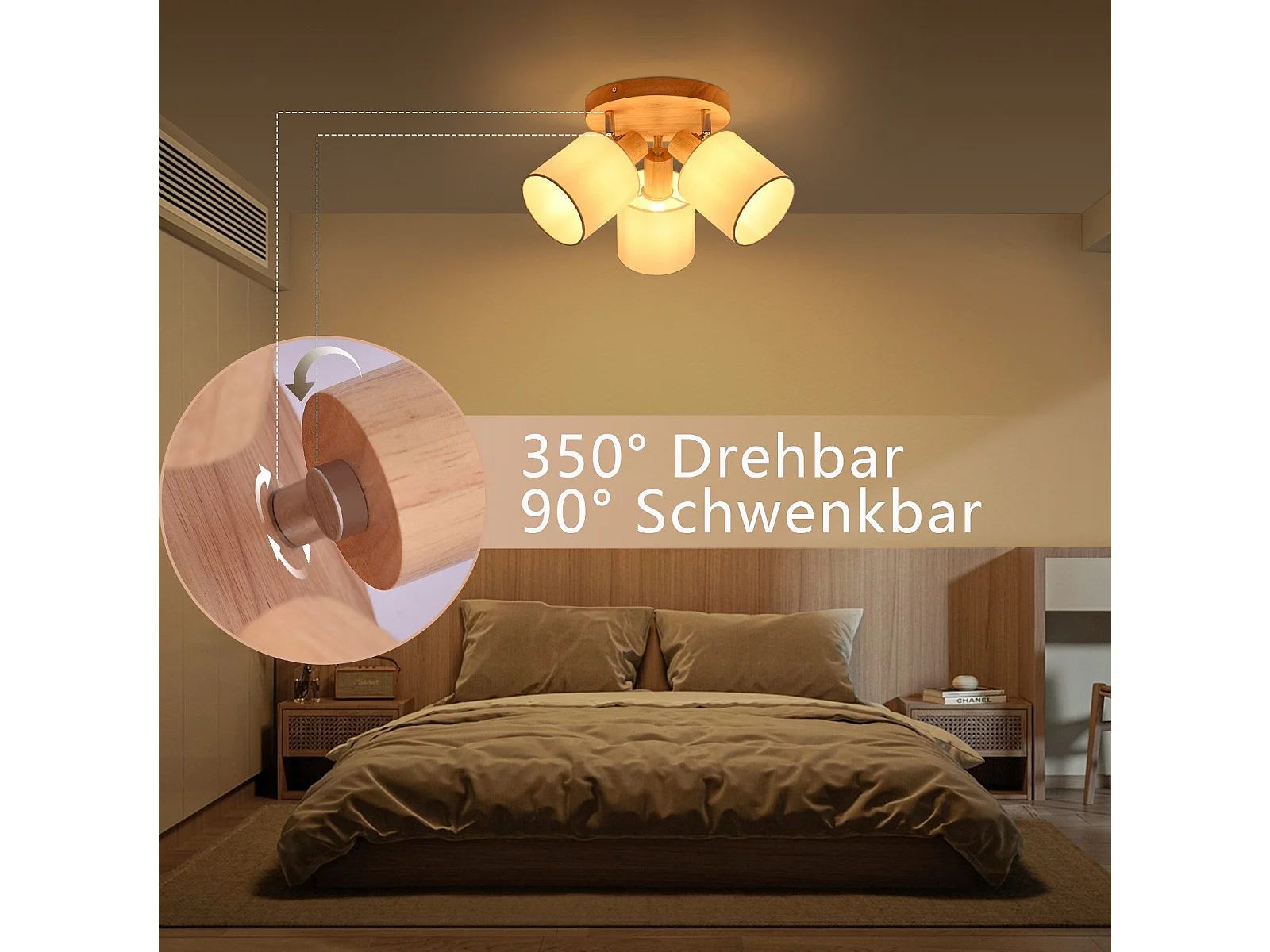 NETTLIFE Spot de plafond 3 Ampoules rond bois Plafonnier LED E14 spot inclinable 350°