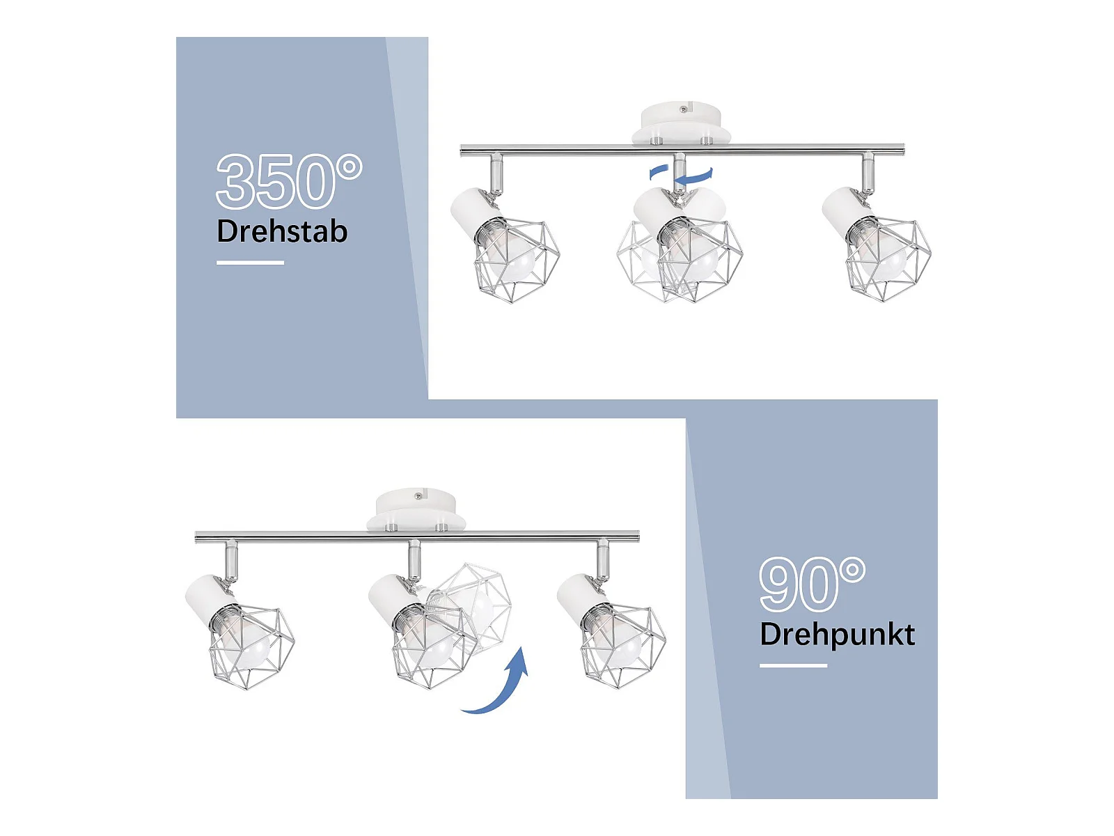 NETTLIFE Spot de plafond vintage E14 intérieur 350° orientable blancsans ampoule industriel 3 lampes rond