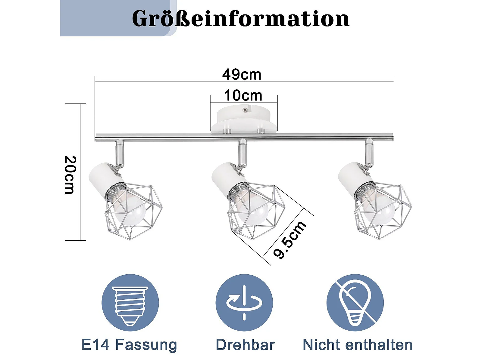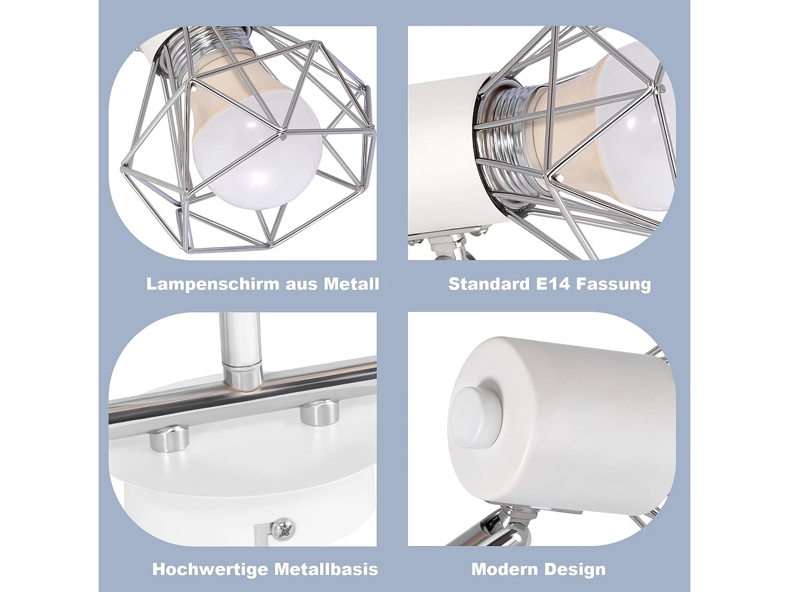 NETTLIFE Spot de plafond blanc E14 3 ampoules abat-jour intérieur en verre spot orientable sans centre lumineux