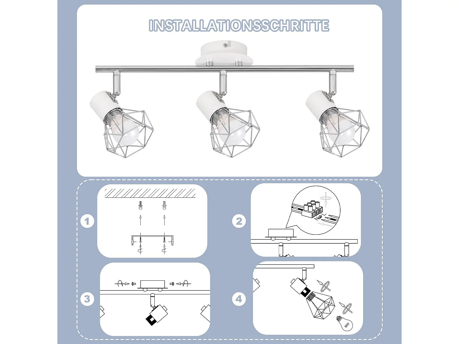 NETTLIFE Spot de plafond LED orientable GU10 4 flamme Spots de plafond Salon industriel orientable