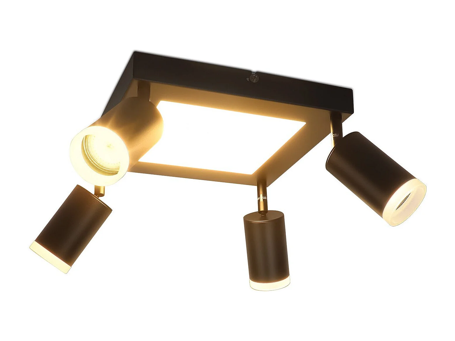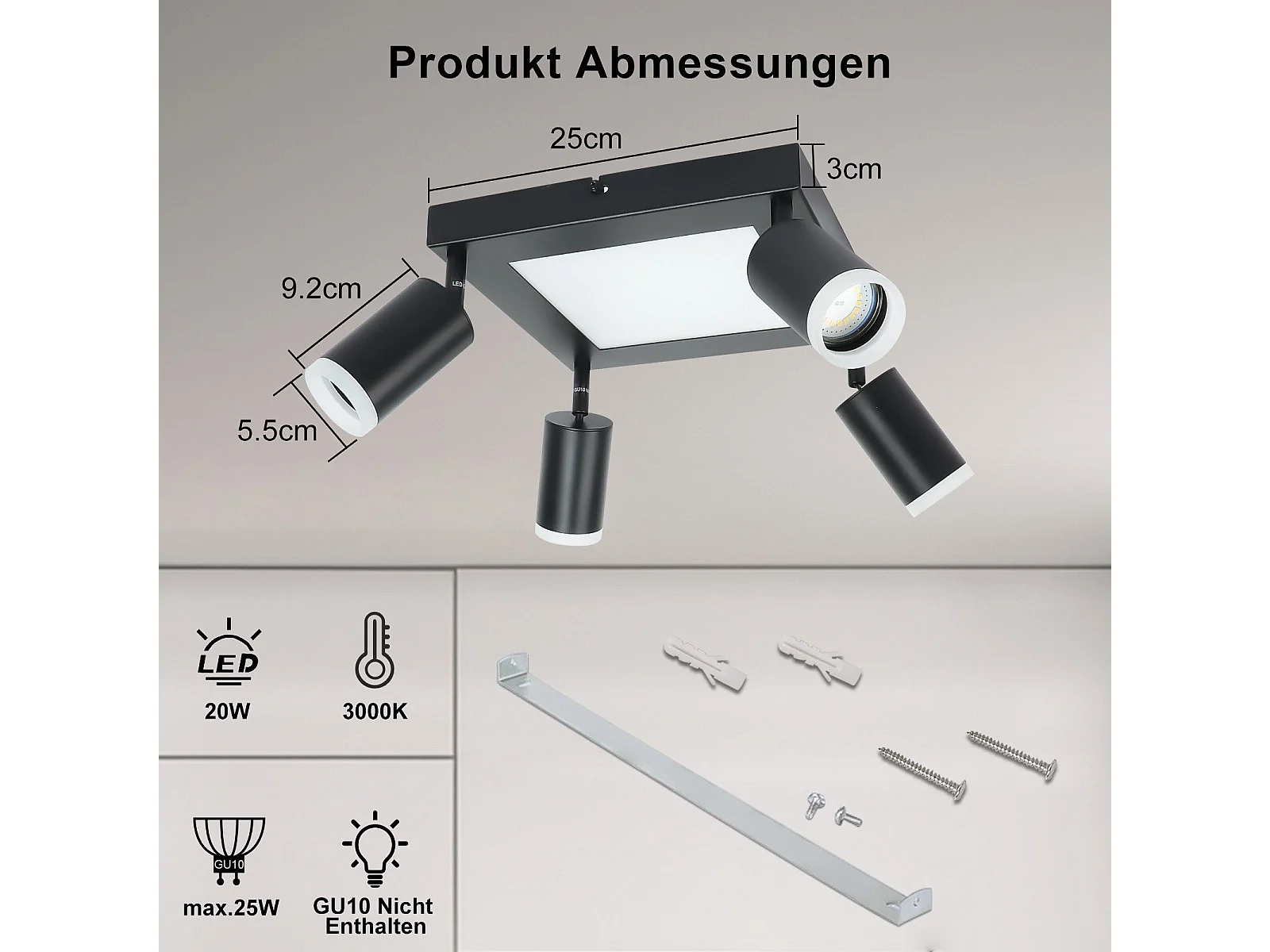 NETTLIFE Spot de plafond 4 ampoules GU10 3000k 20W lampe de cuisine noire blanc chaud lampe de couloir pivotante