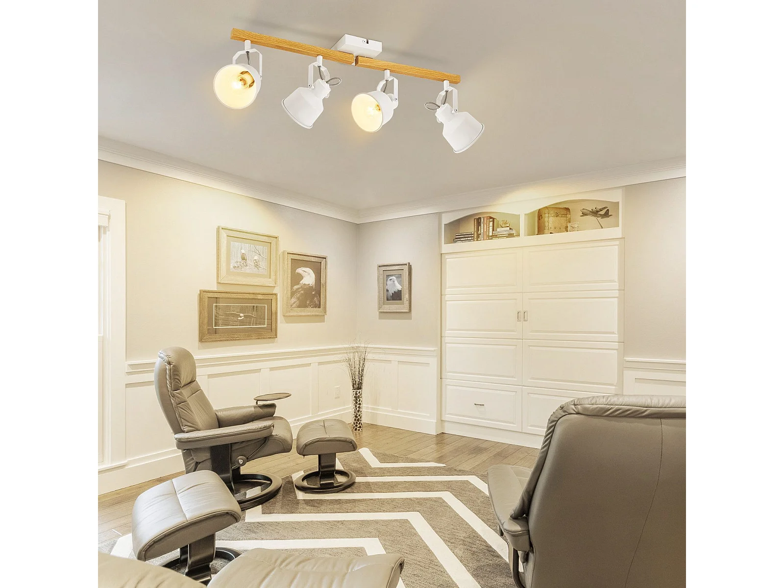 NETTLIFE Spot de plafond 4 flammes bois blanc vintage GU10 plafonnier orientable lampe de couloir orientable 350°