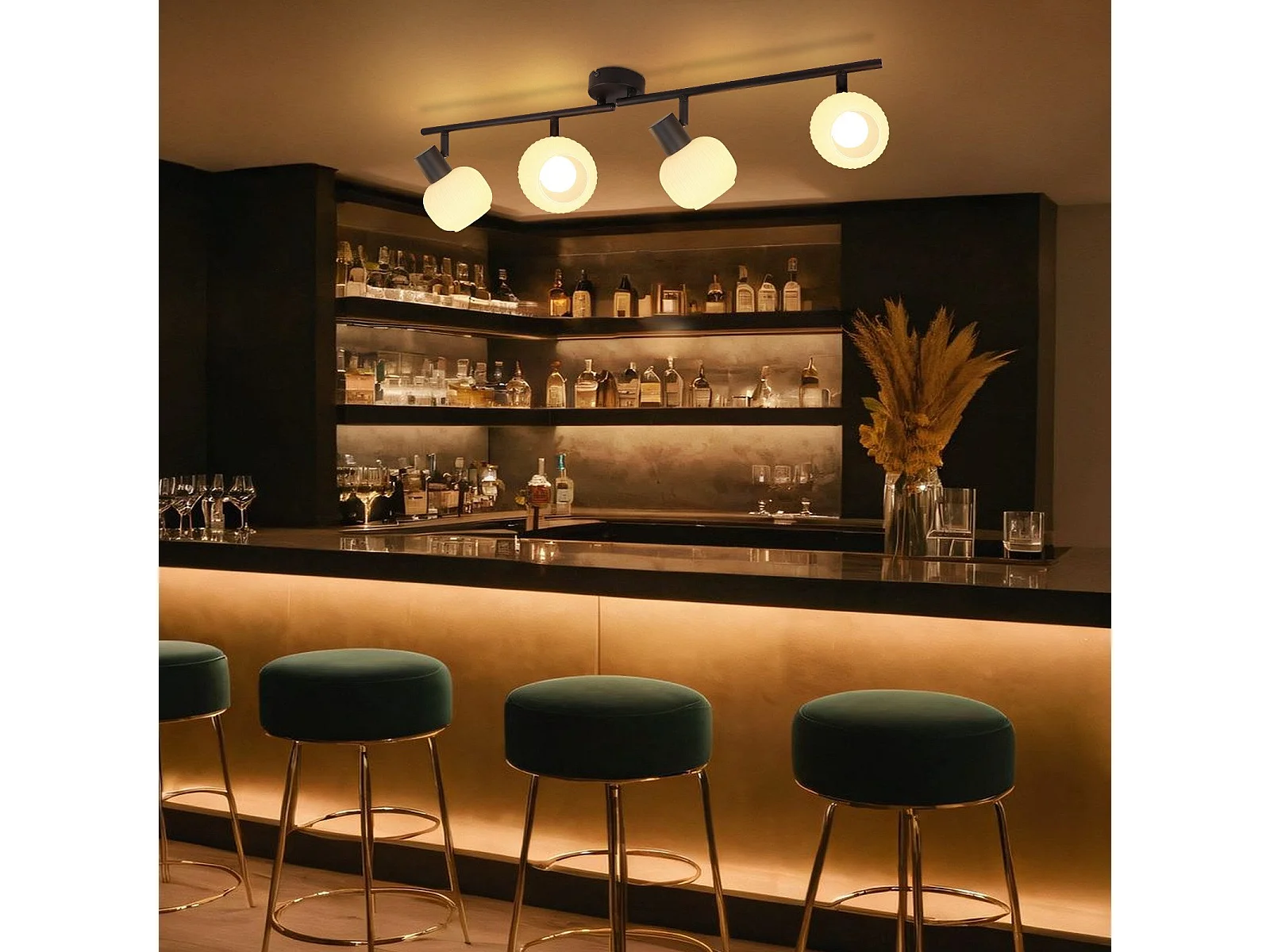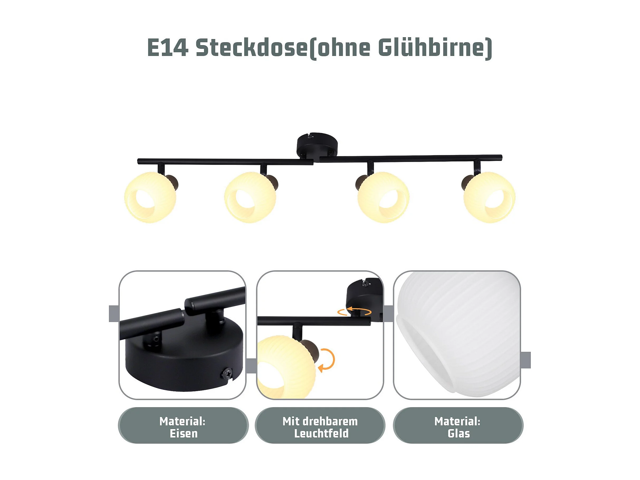 NETTLIFE Spot de plafond E14 plafonnier 4 ampoules intérieur abat-jour en verre spot orientable