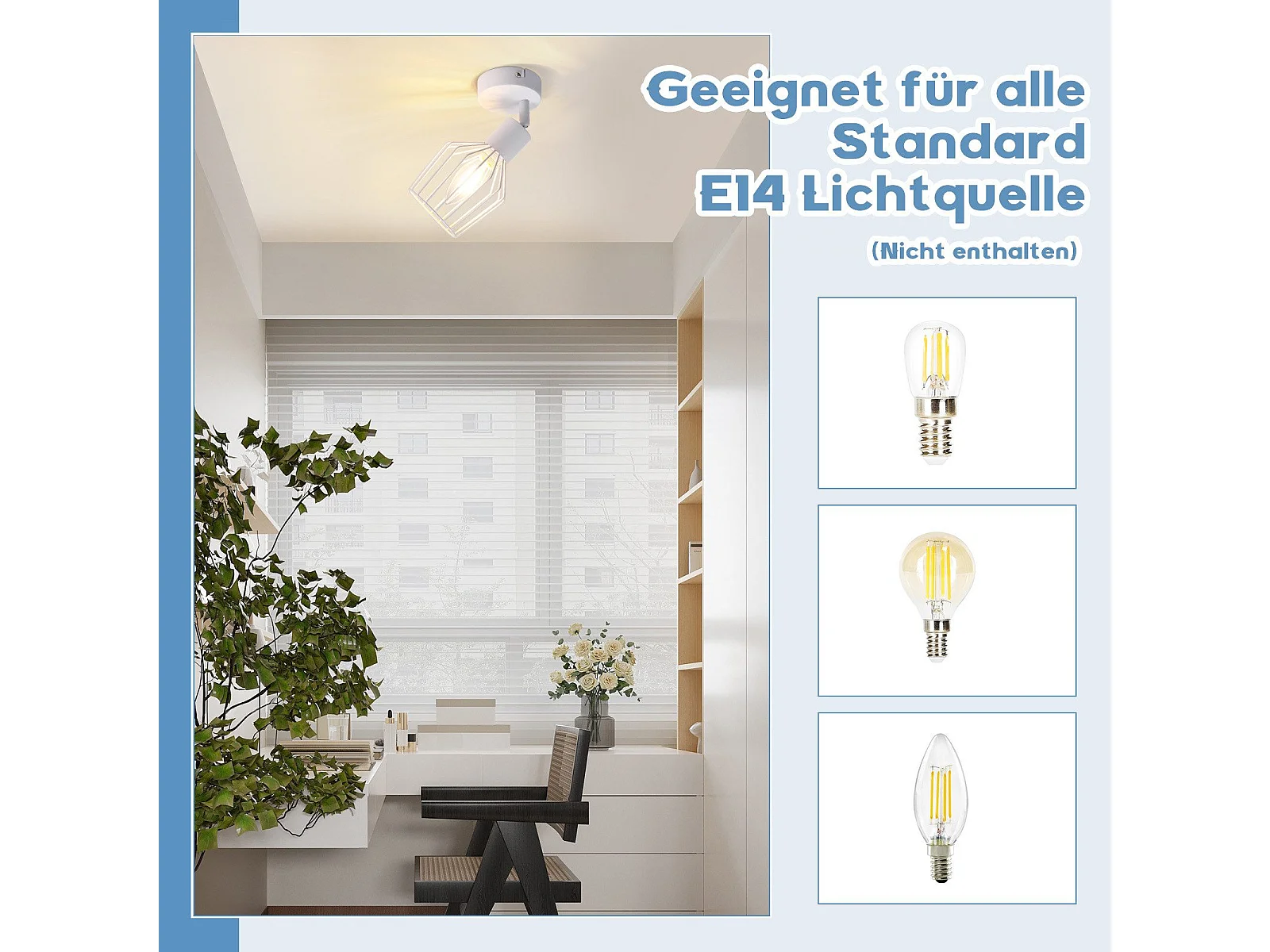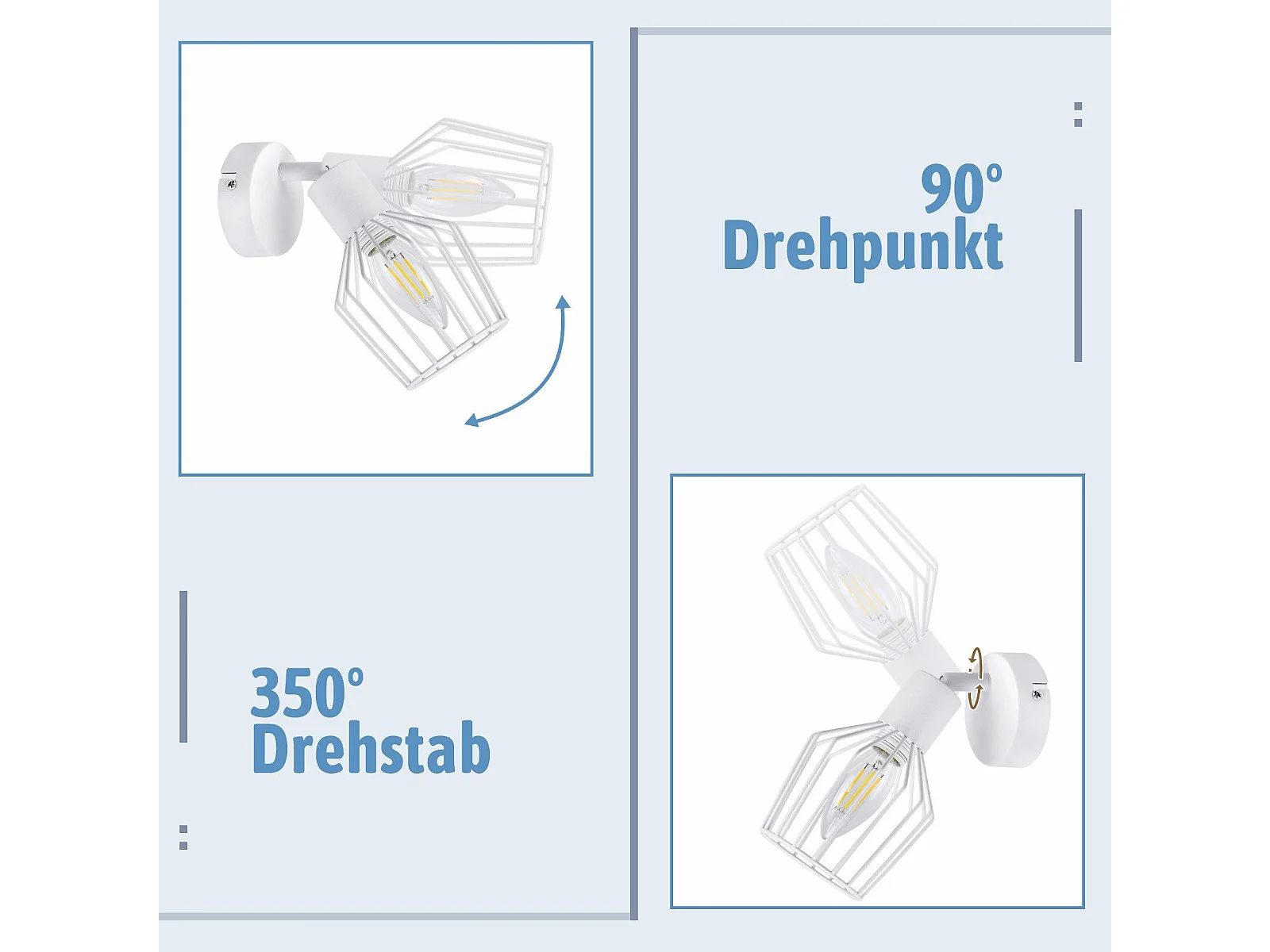 NETTLIFE Spot de Plafond E14 - métal, lampe de couloir industrielle pivotante à 350°, applique murale pour couloir et salon,blanc