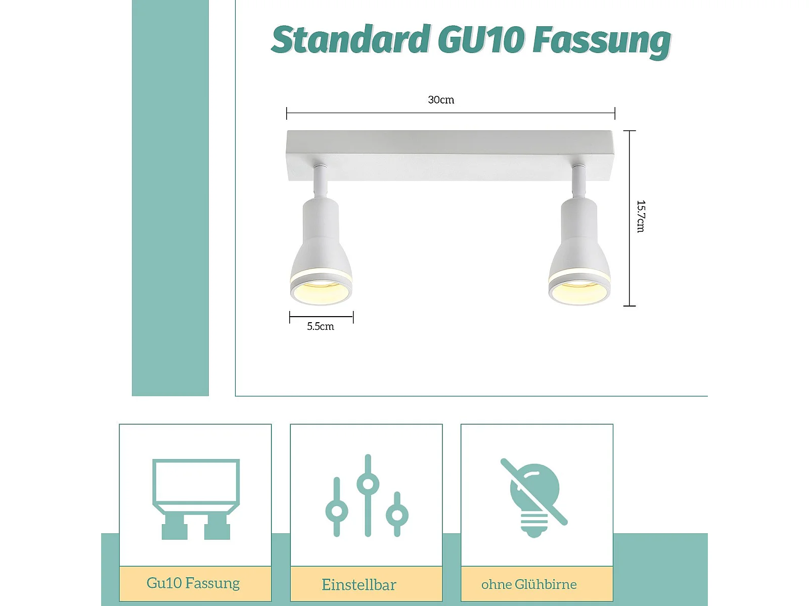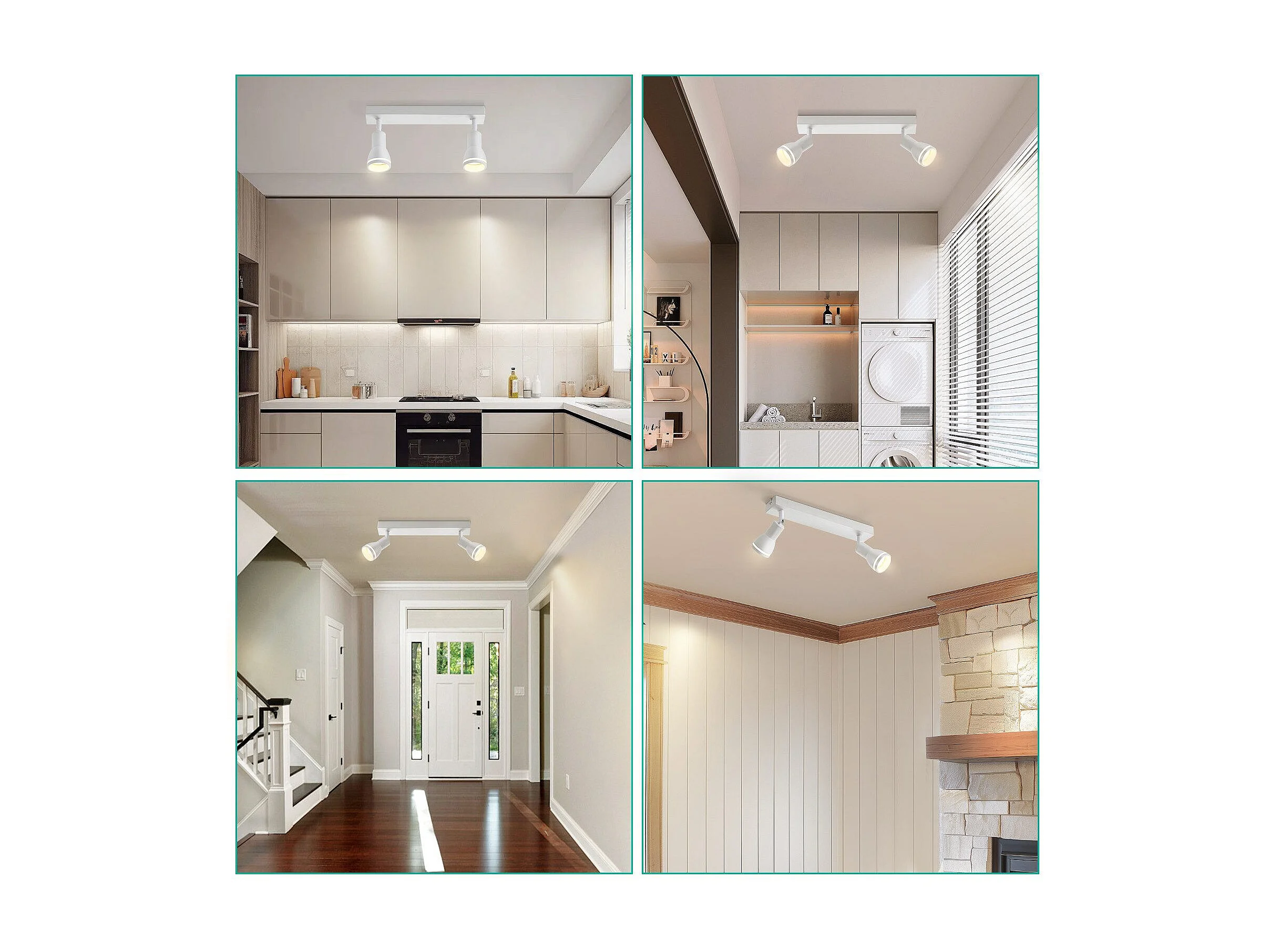 NETTLIFE Spot de plafond plafonnier moderne 2 ampoules orientables Plafonnier GU10 métal blanc