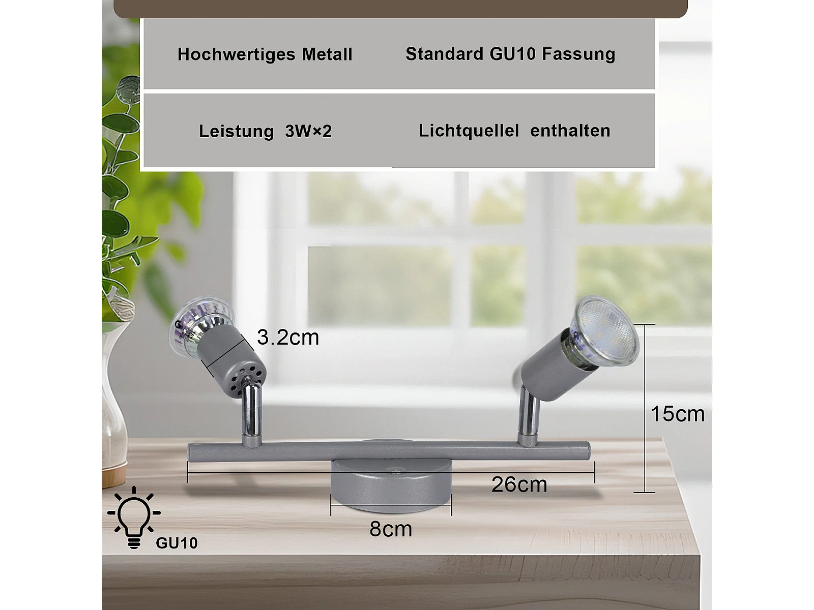 NETTLIFE Spot de plafond LED orientable GU10 2 flamme spots de plafond salon industriel orientable