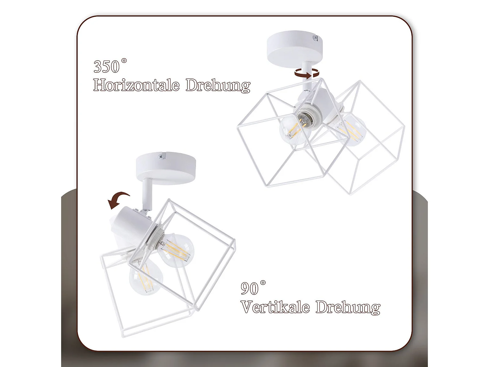NETTLIFE Spot de plafond noir E14 plafonnier orientable à 350° vintage métal salon orientable sans ampoule