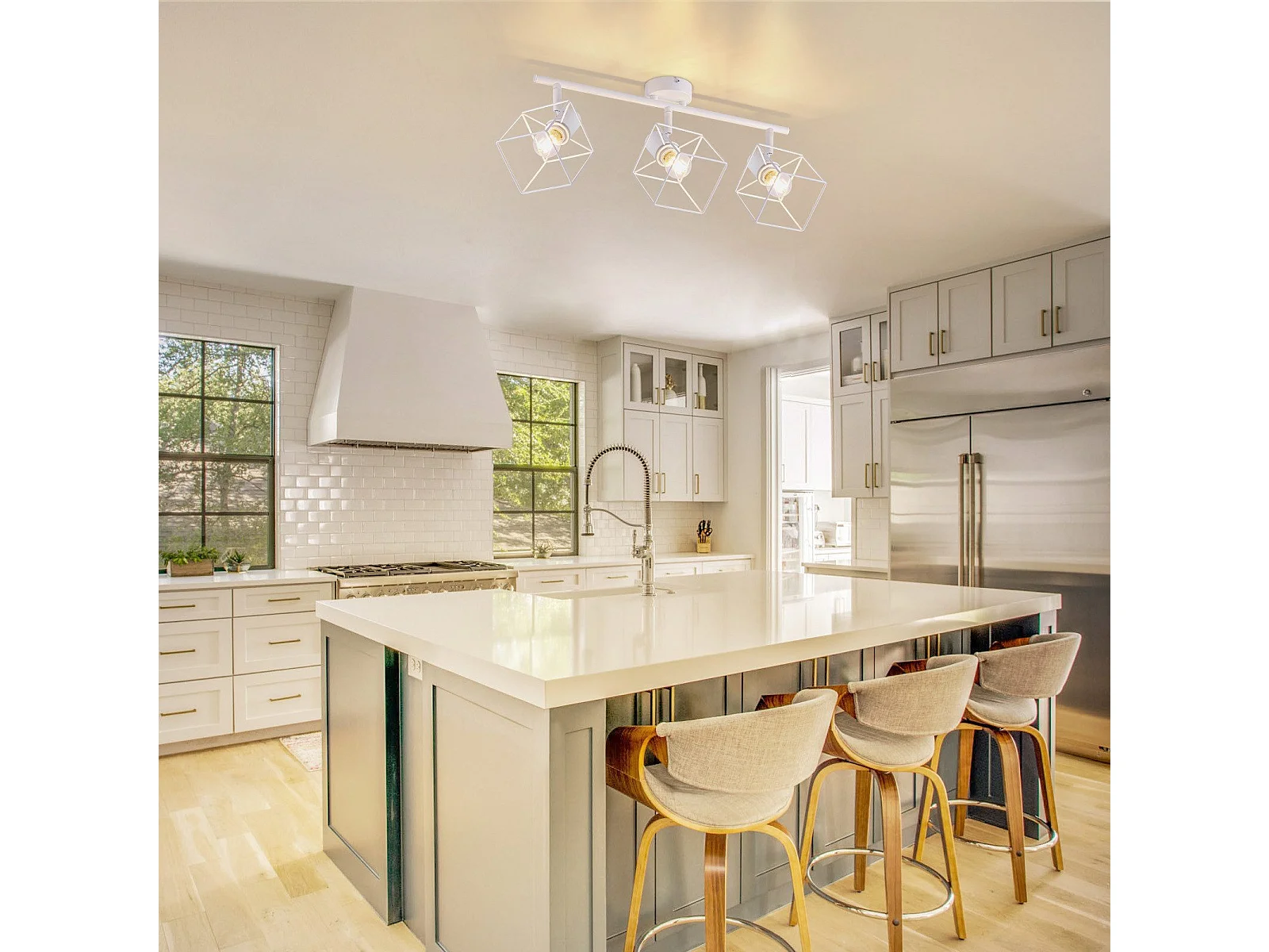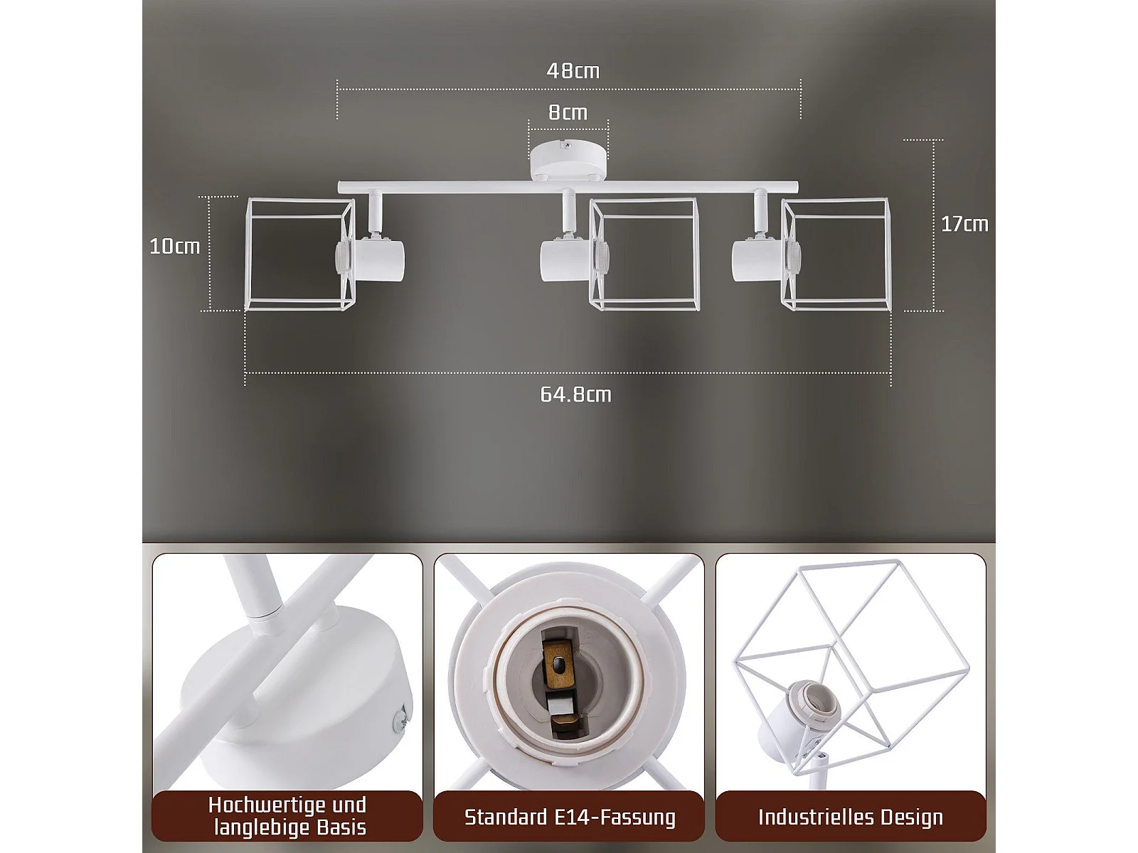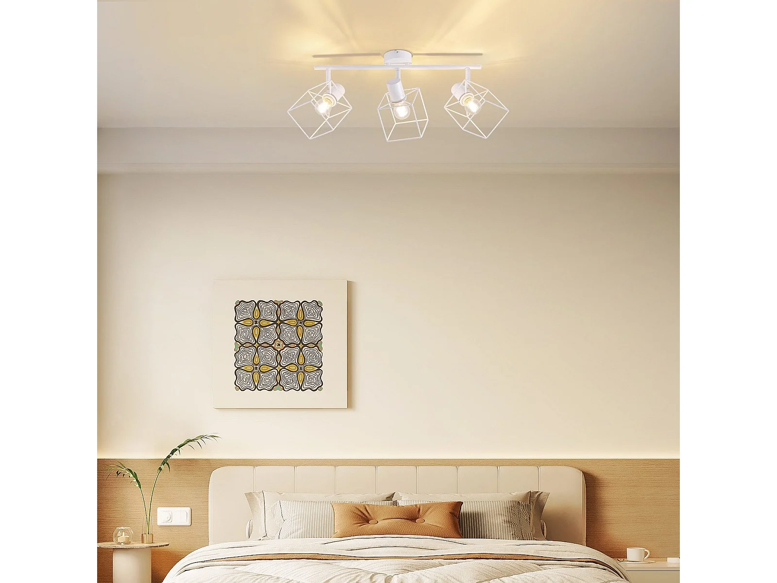 NETTLIFE Plafonnier 3 Spots blanc aspect bois - plafonnier E14 orientable 350° 4 ampoules max 25w moderne pour salon chambre cuisine.